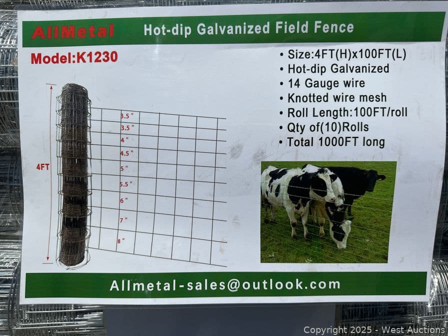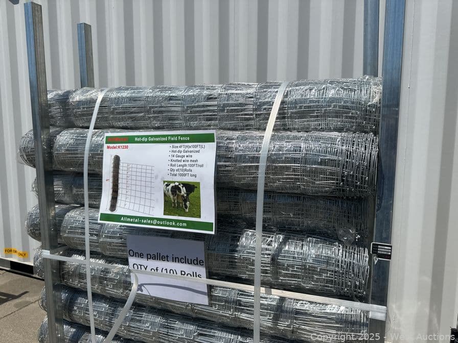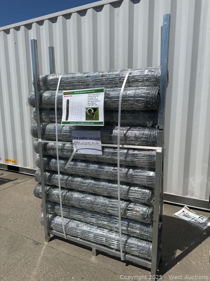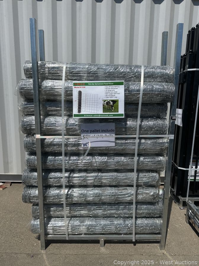 (10) 4'x100' Hot-Dip Galvanized Rolls of Knotted Wire Mesh (Unused) | West Auctions