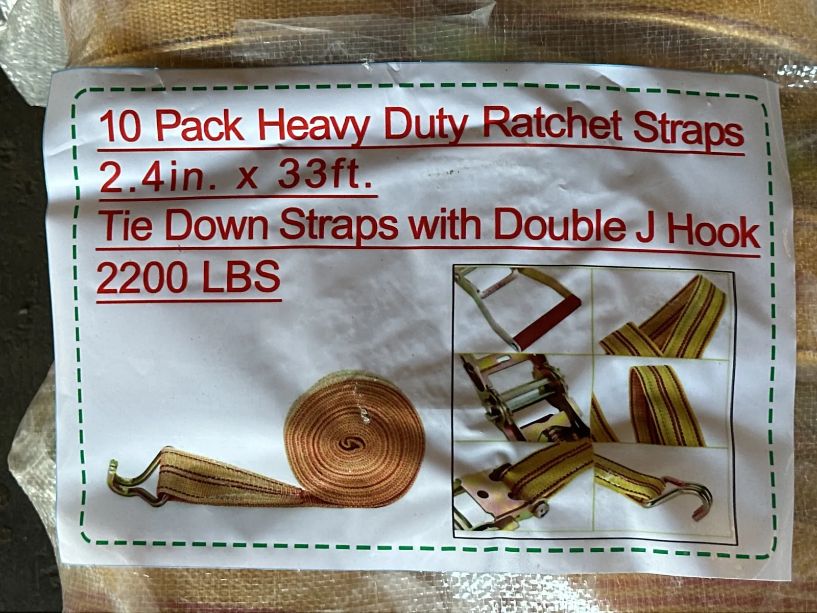 (10) Heavy-Duty 33' Ratchet Straps with J-Hooks, 2200LB Capacity (Unused) | West Auctions