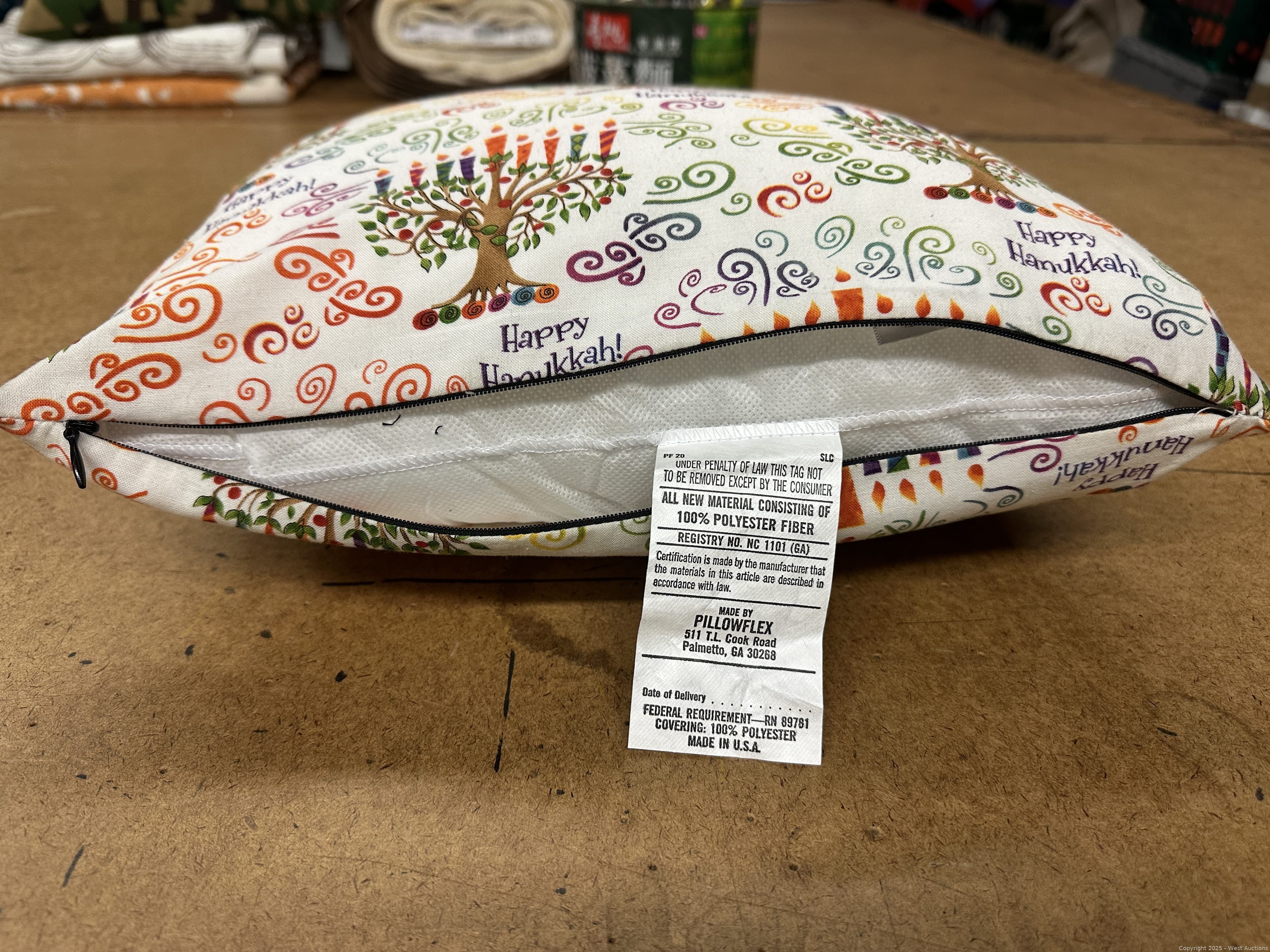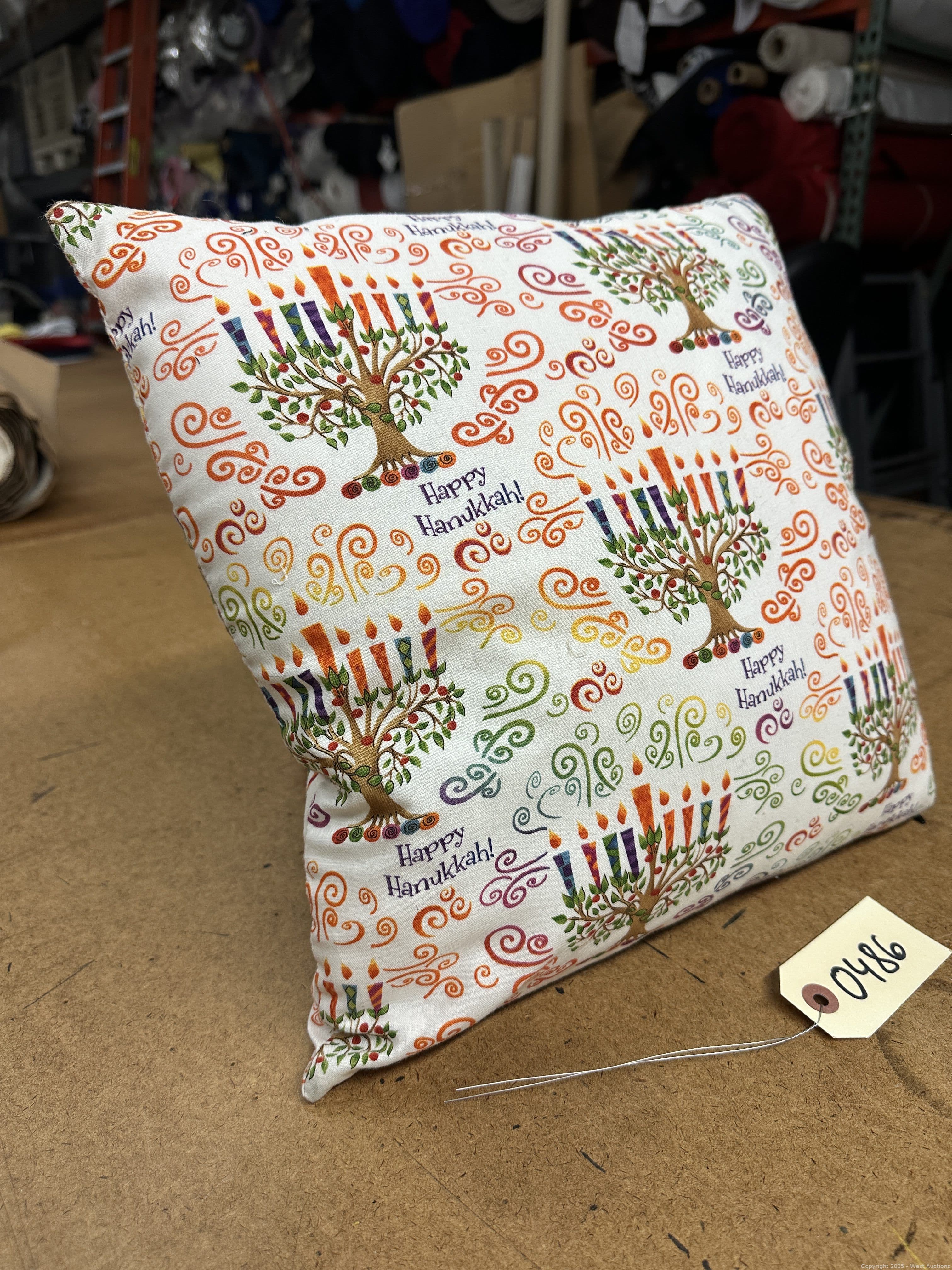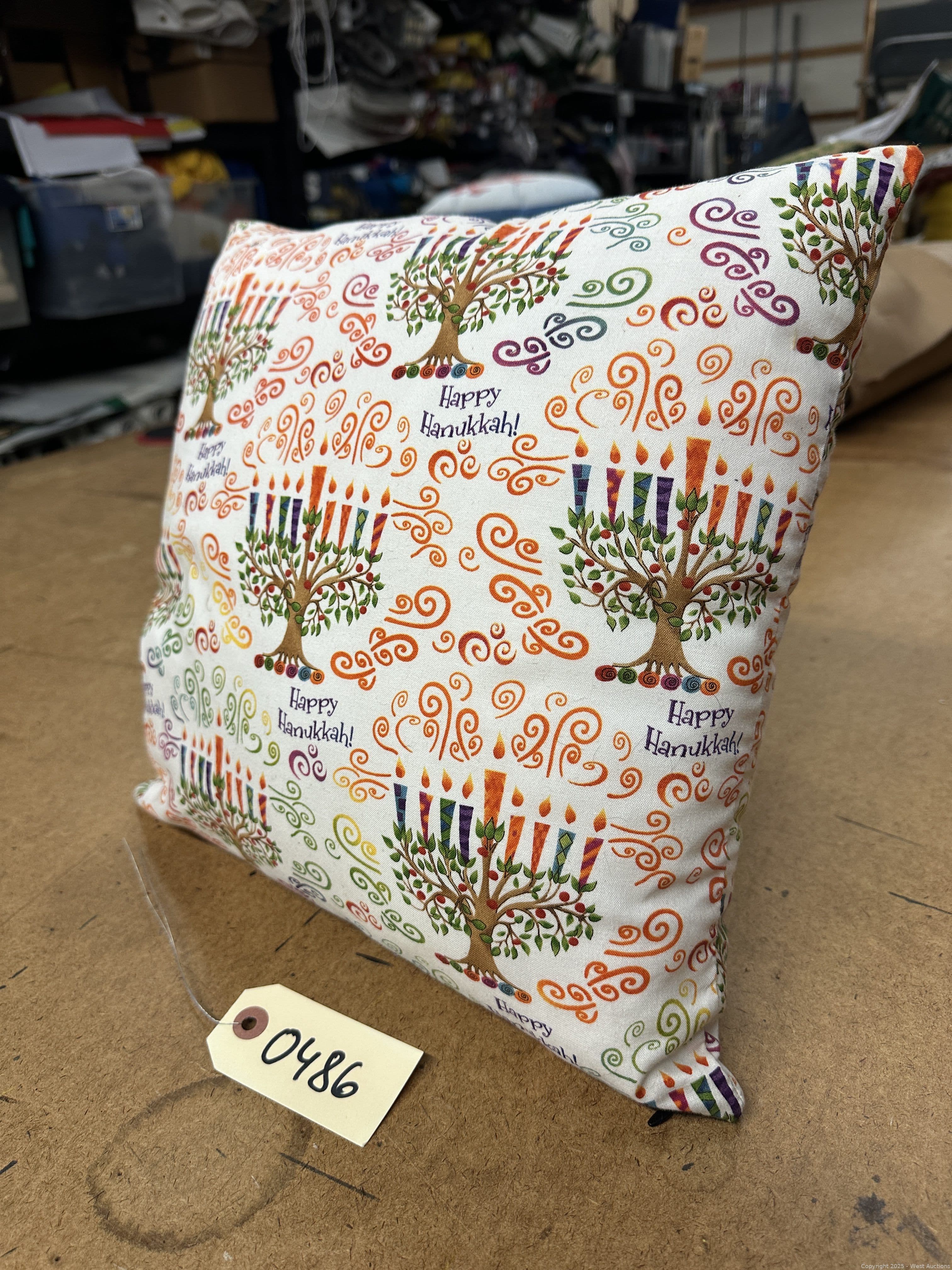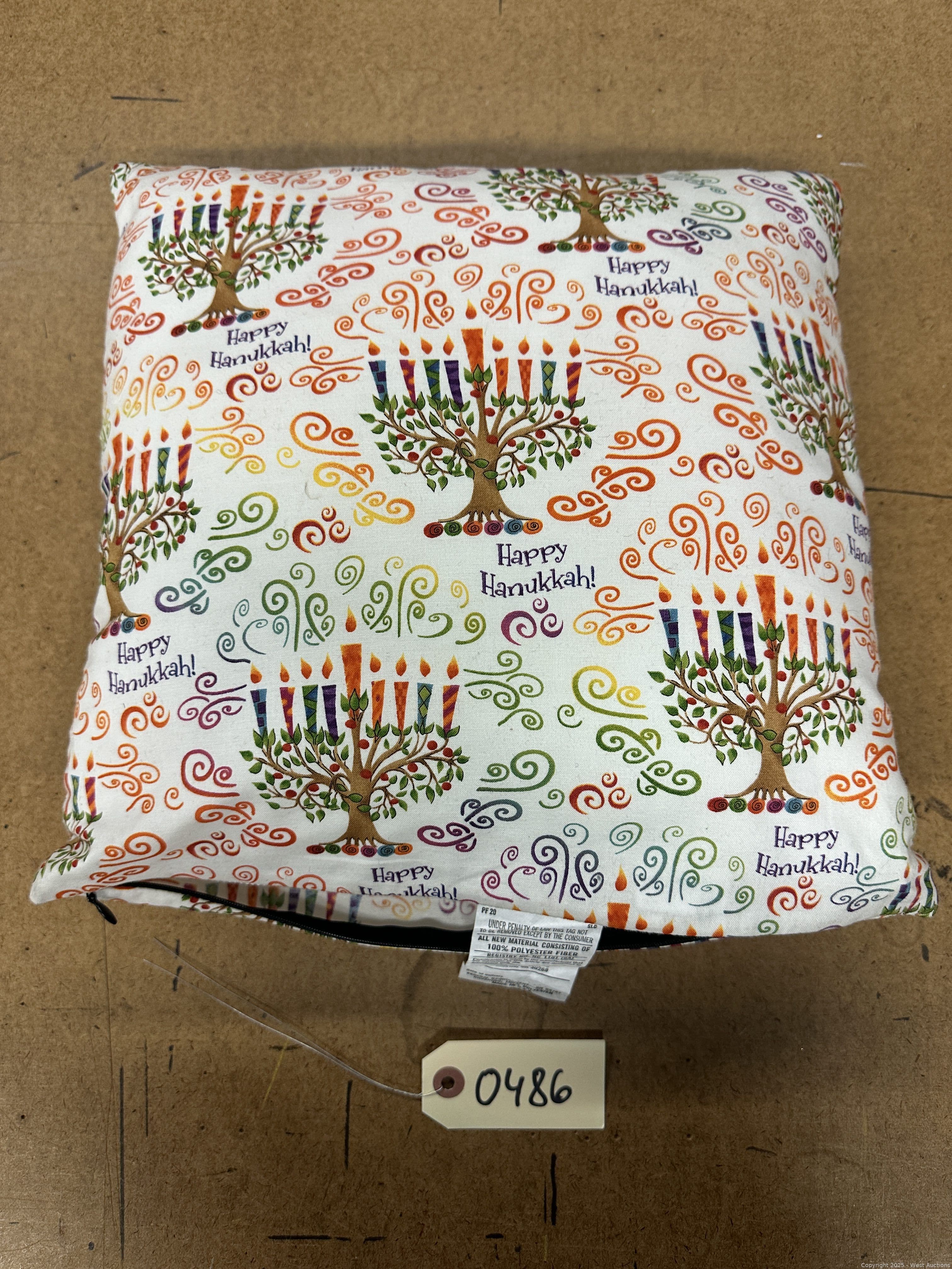 15”x15” Decorative Pillow “Happy Hanukkah” | West Auctions