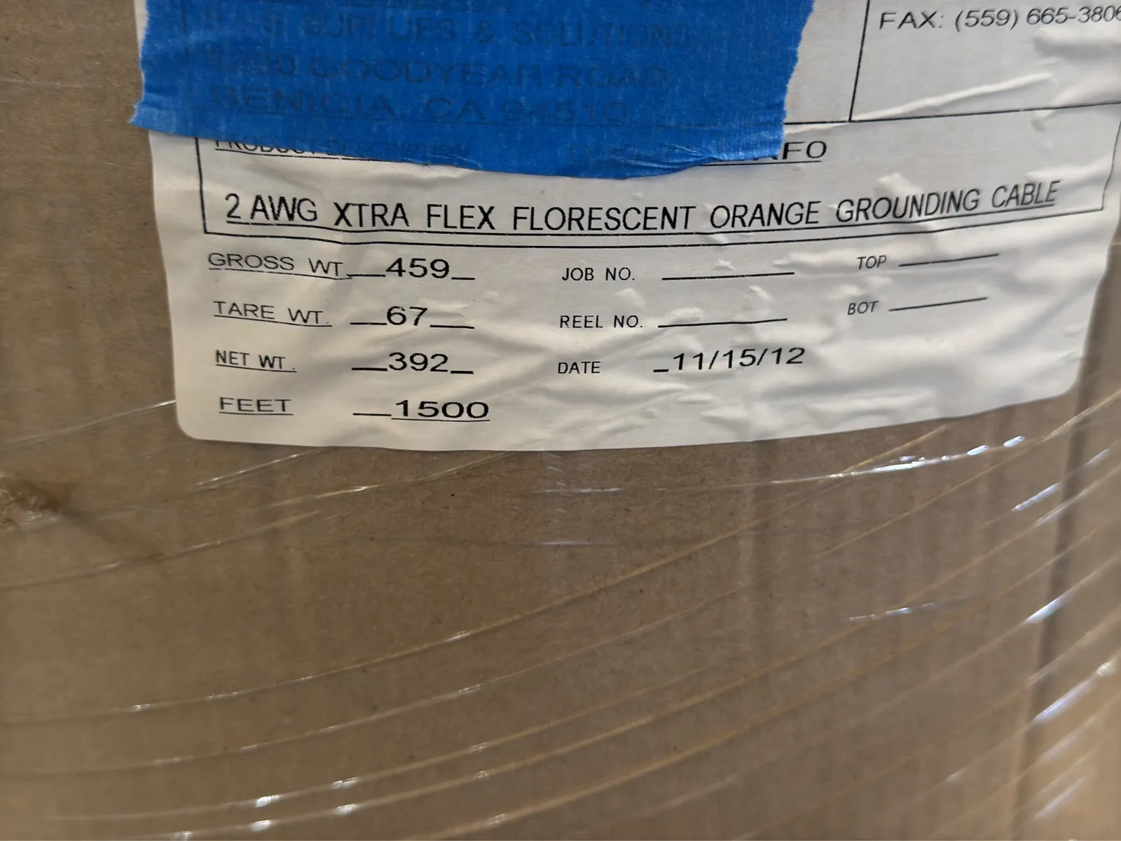 1500’ Spool Of 2AW Xtra Flex Florescent Orange Grounding Cable | West Auctions