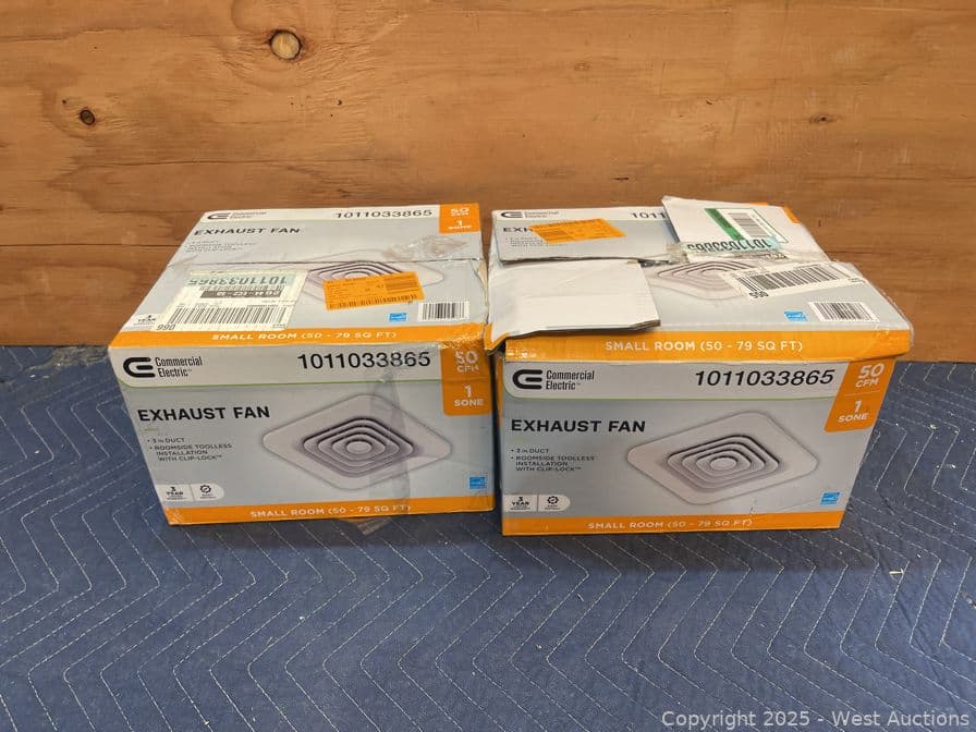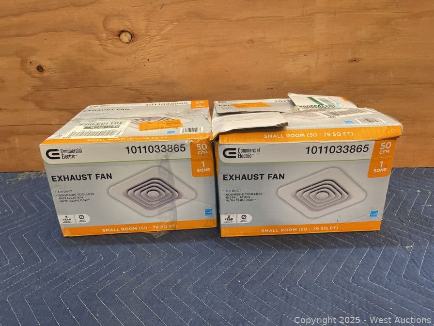 (2)Commercial Electric 50 CFM Ceiling Mount Room Side Installation Bathroom Exhaust Fan, ENERGY STAR- $108 Retail Price | West Auctions