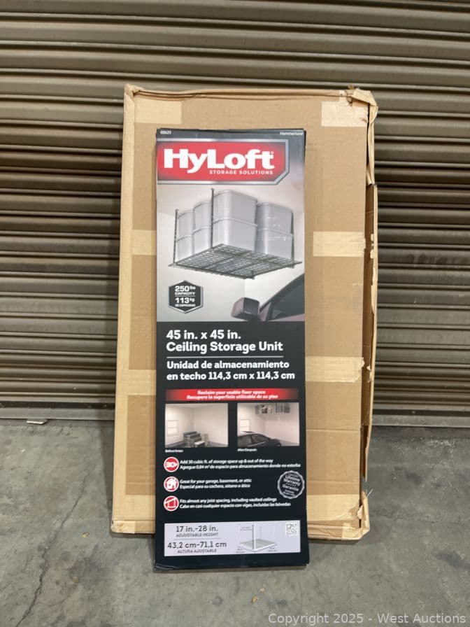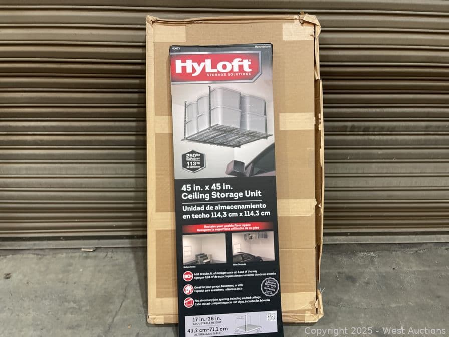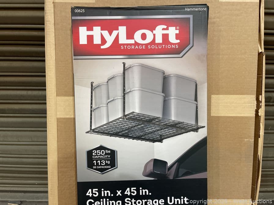 (2)HyLoft 45 in. W x 45 in. D Ceiling Mount Storage Unit in Black- $198 Retail Price | West Auctions