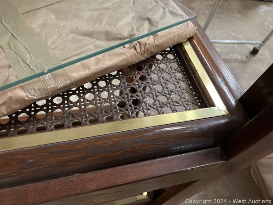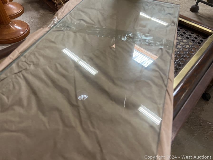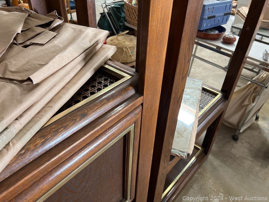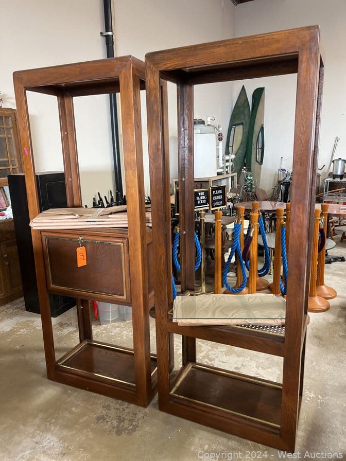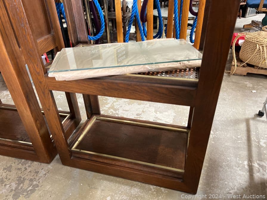 (2) Matching Wood Frame Shelves with Glass Tiers | West Auctions