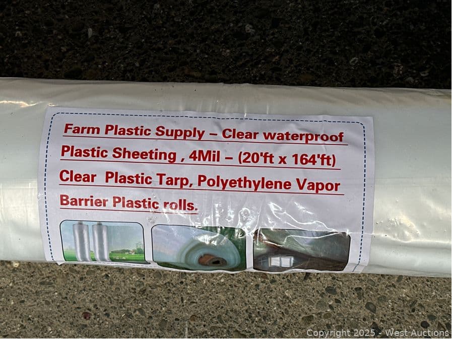 20'x164' Roll of Clear Waterproof Plastic Sheeting, 4Mil (Unused) | West Auctions