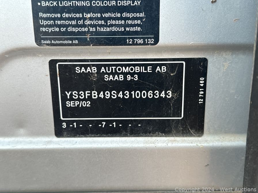 2003 SAAB 9-3 | West Auctions