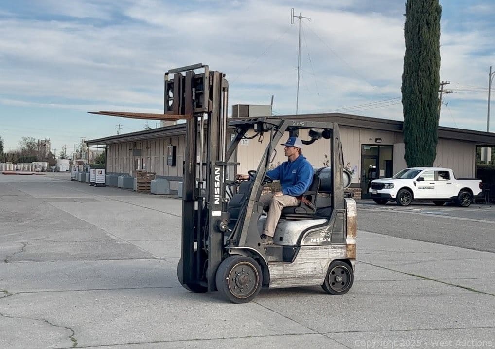 2012 Nissan MCP1F2A20LV 4000 Lb Capacity Propane Forklift with Hydraulic Fork Positioner | West Auctions