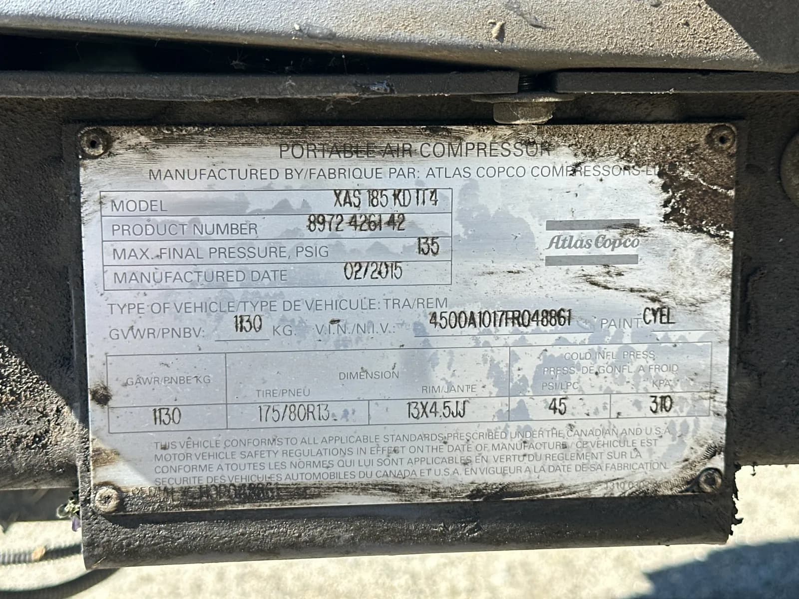 2015 Atlas Copco XAS 185 Diesel Air Compressor Trailer | West Auctions