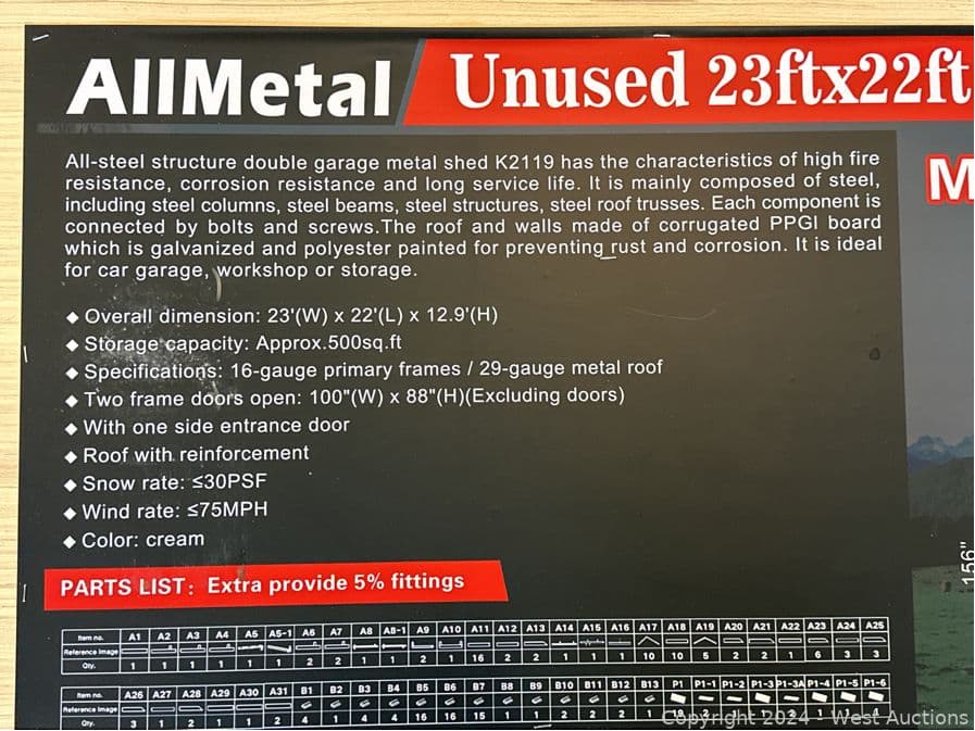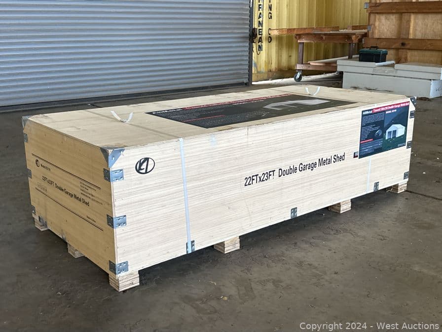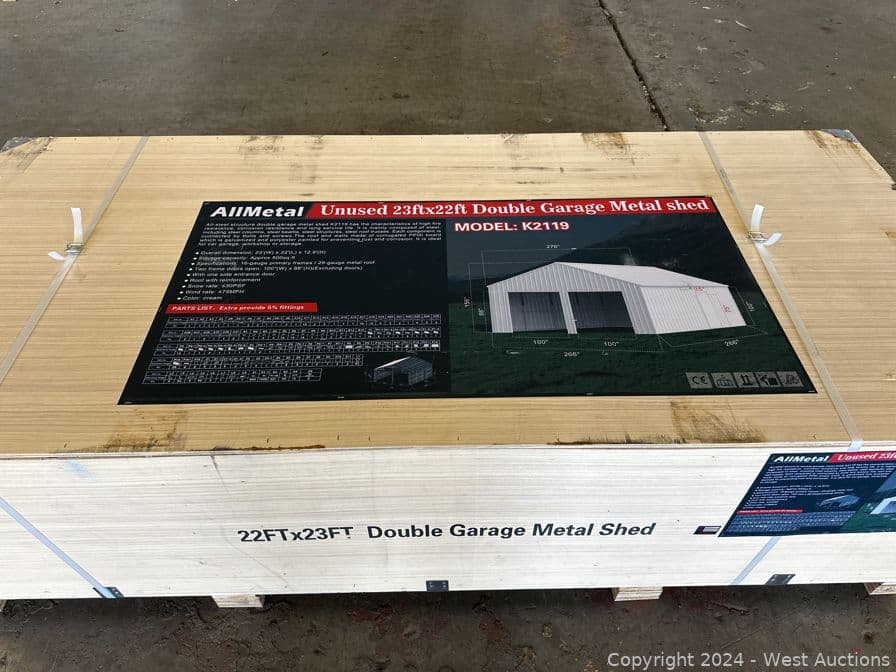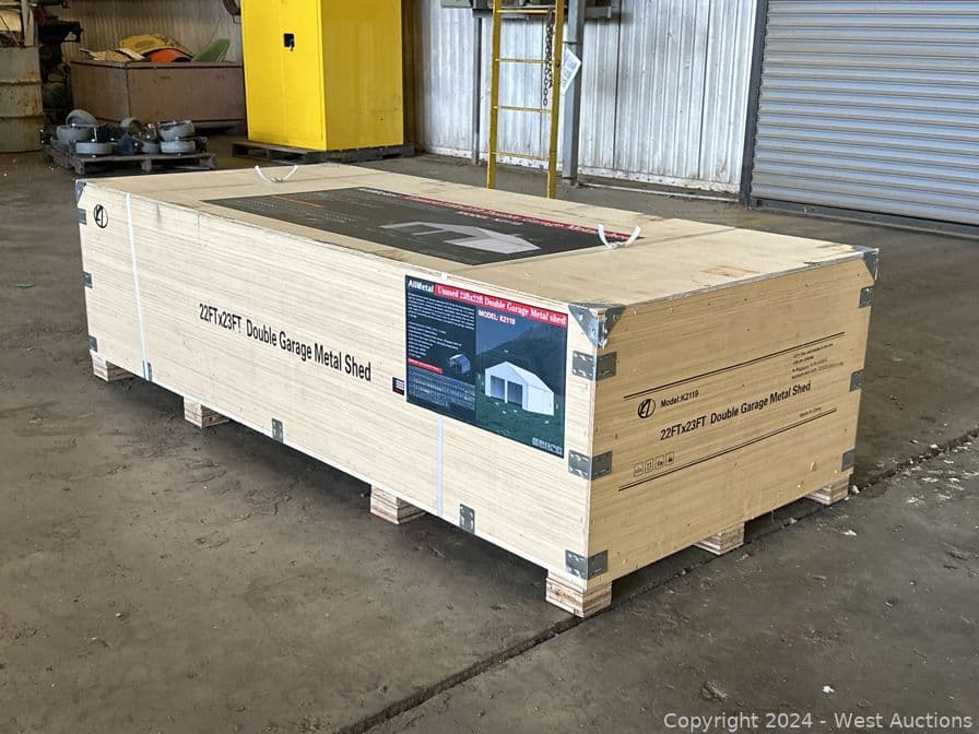 2024 All Metal 23'x22'x12.9' Double Garage Metal Shed (Unused) | West Auctions