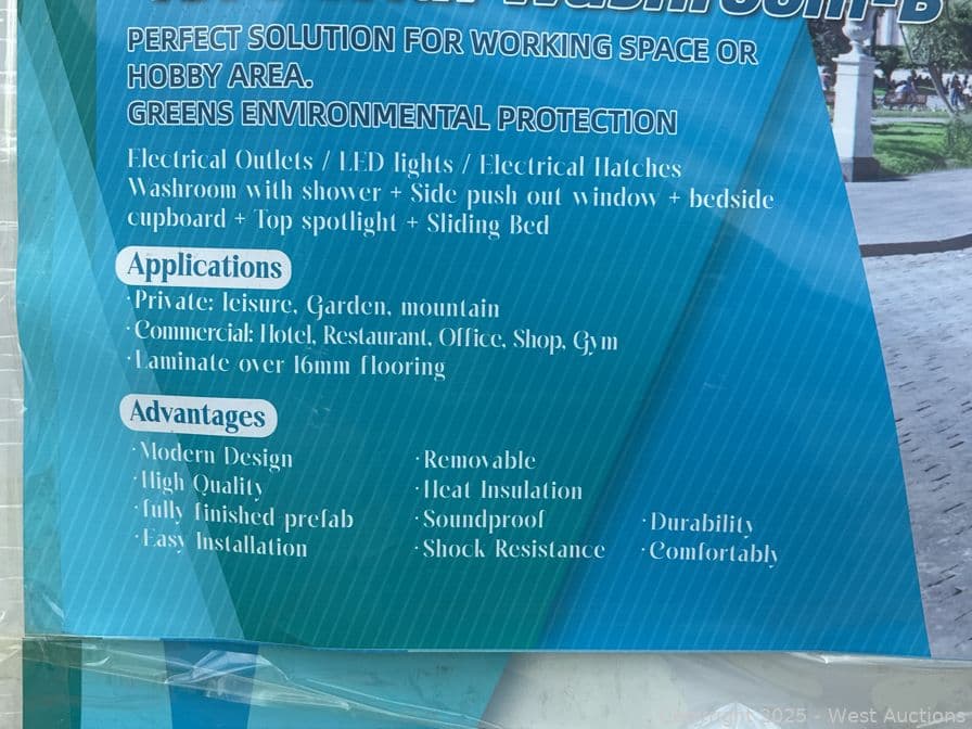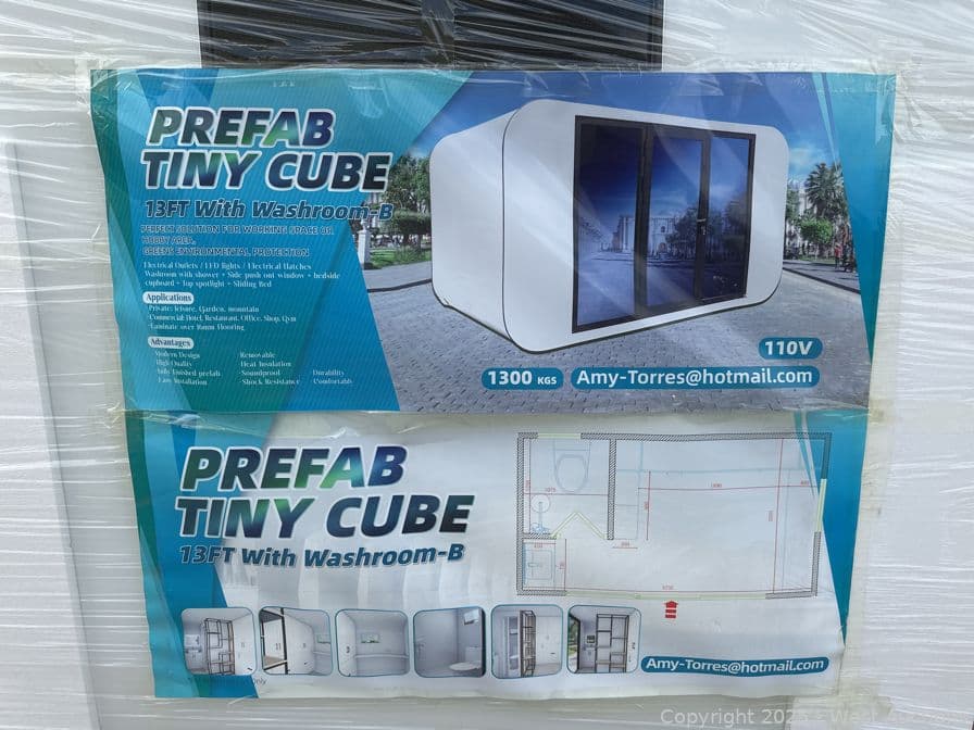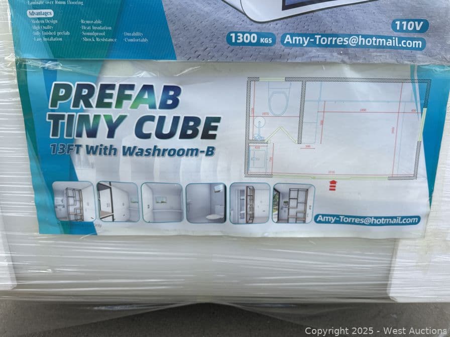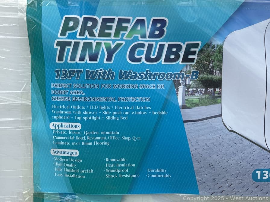 2025 110V 13' Prefab Tiny Cube with Washroom (Unused) | West Auctions