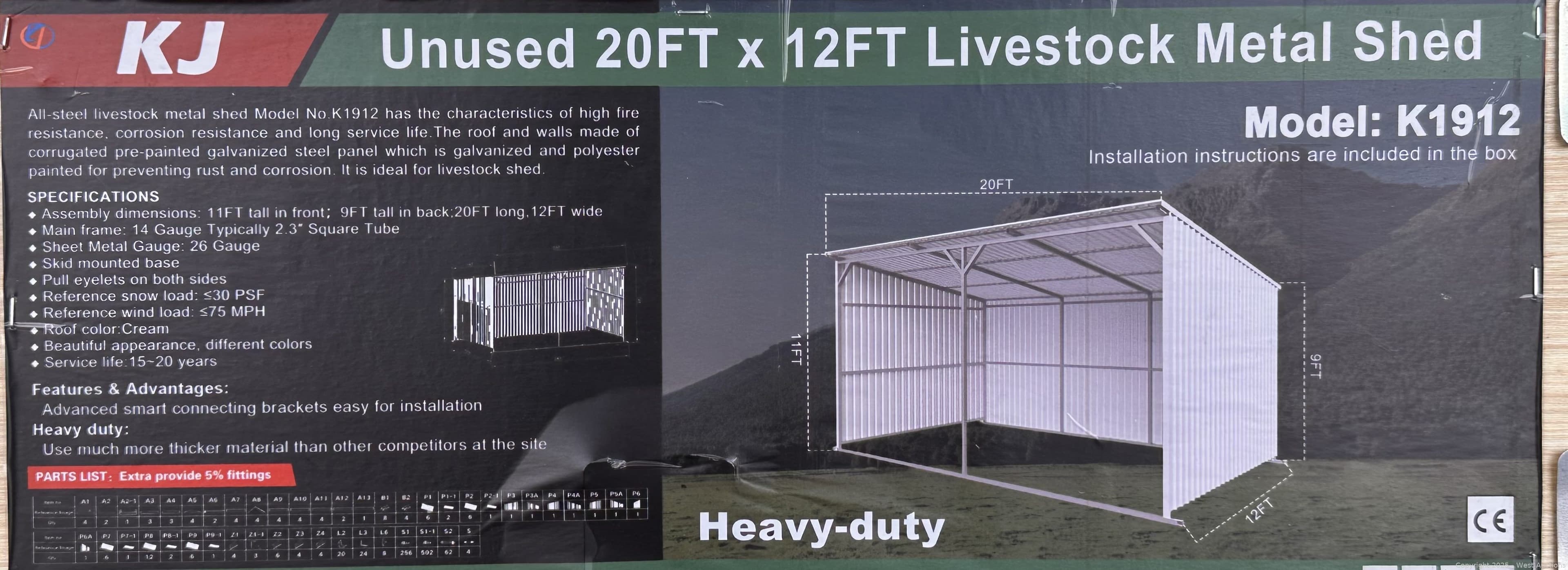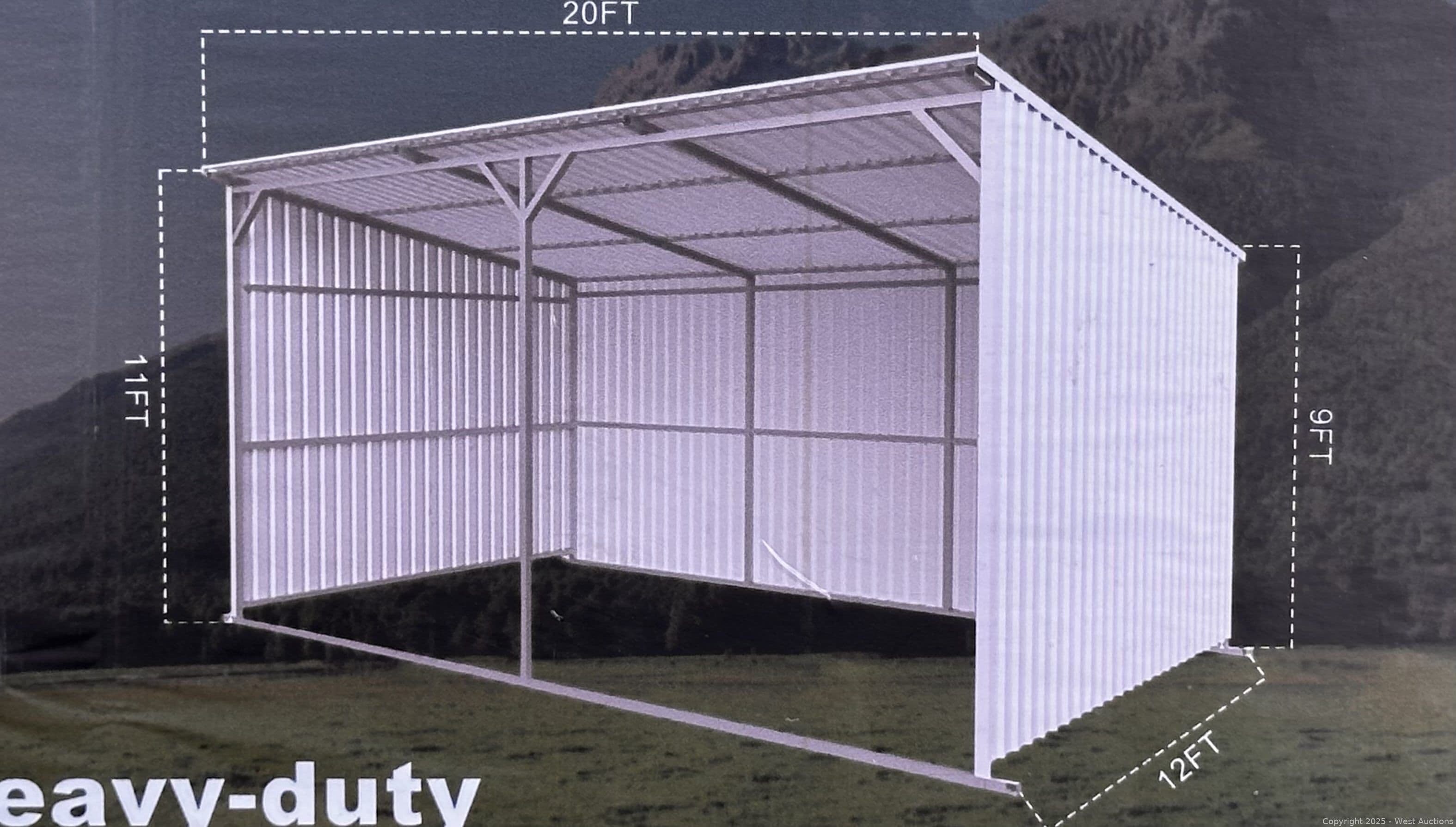 2025 KJ 20'x12' Heavy-Duty Livestock Metal Shed Model K1912 (Unused) | West Auctions