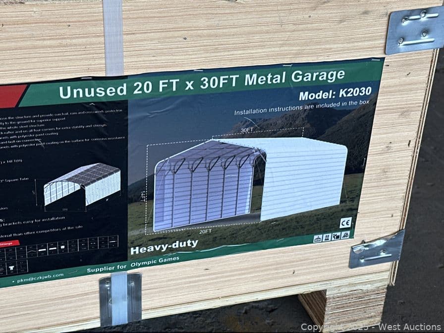 2025 KJ 20'x30' Heavy-Duty Metal Garage Model K2030 (Unused) | West Auctions