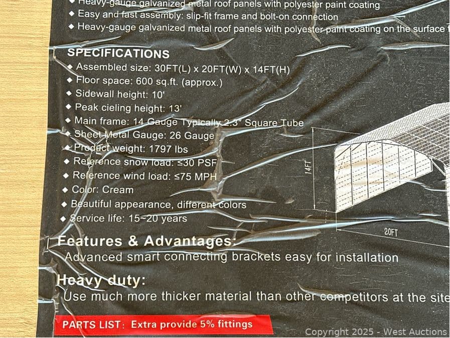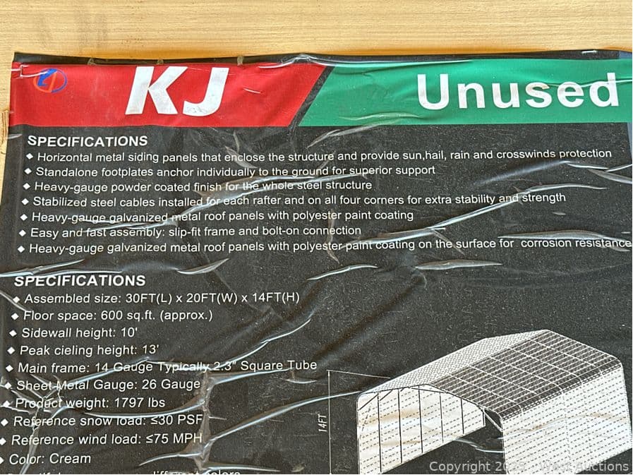 2025 KJ 20'x30' Heavy-Duty Metal Garage Model K2030 (Unused) | West Auctions