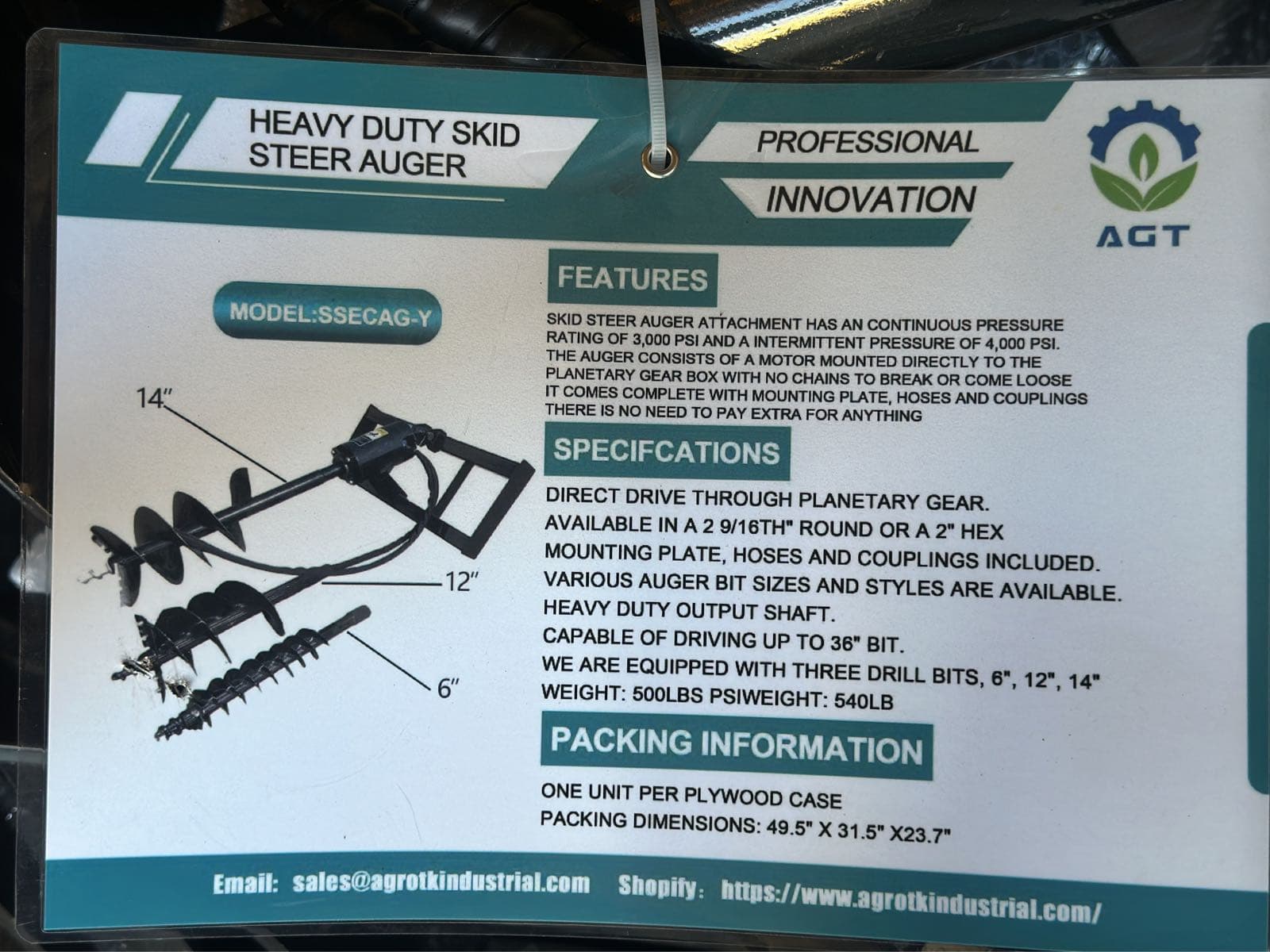 2026 Mower King SSECAG-Y Heavy Duty Skid Steer Auger with 6, 12, and 14" Bits (Unused) | West Auctions