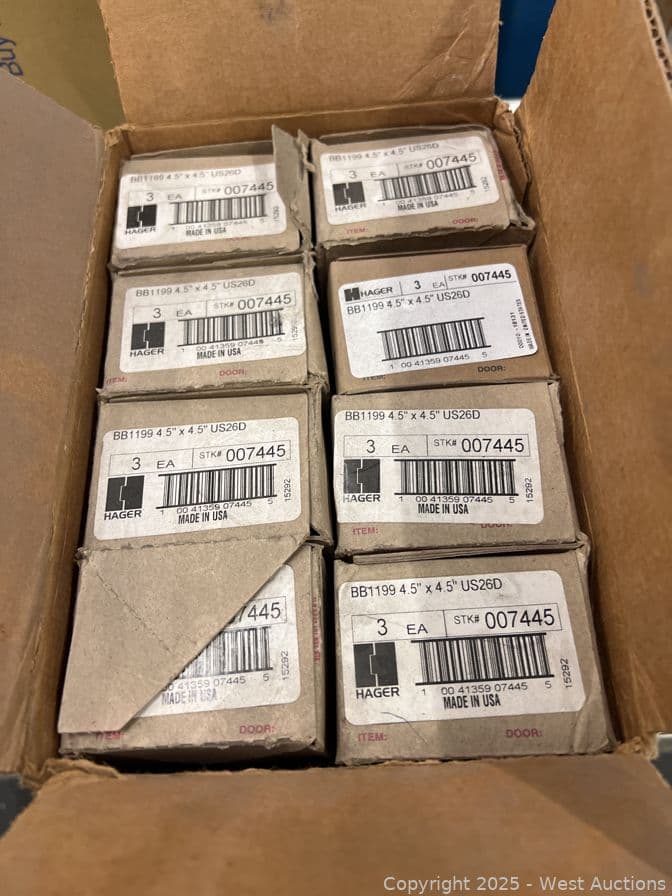 (24) Hager BB1199 4.5″ x 4.5″ Heavy Weight Ball Bearing Hinges - Retail over $1,200 | West Auctions