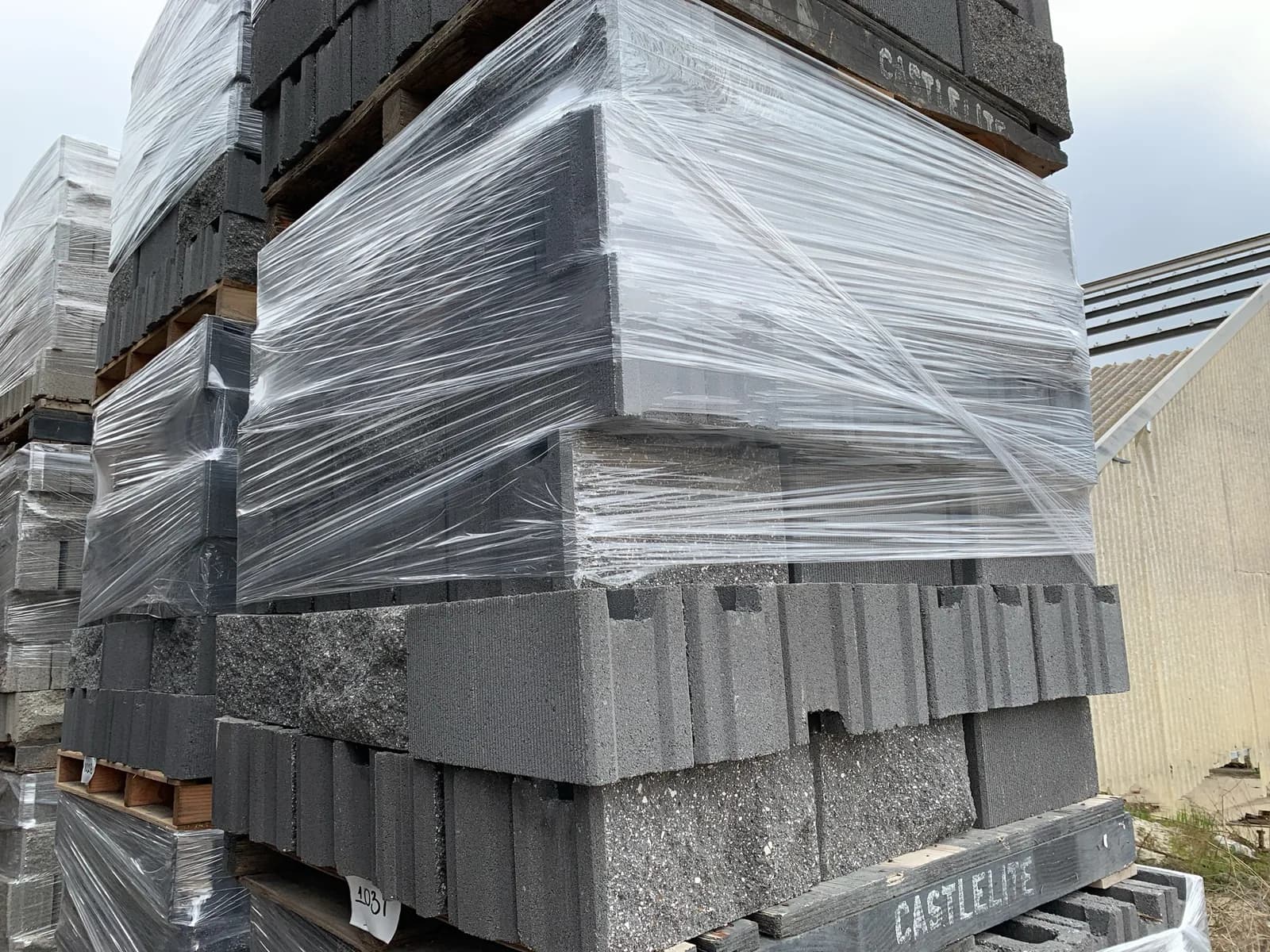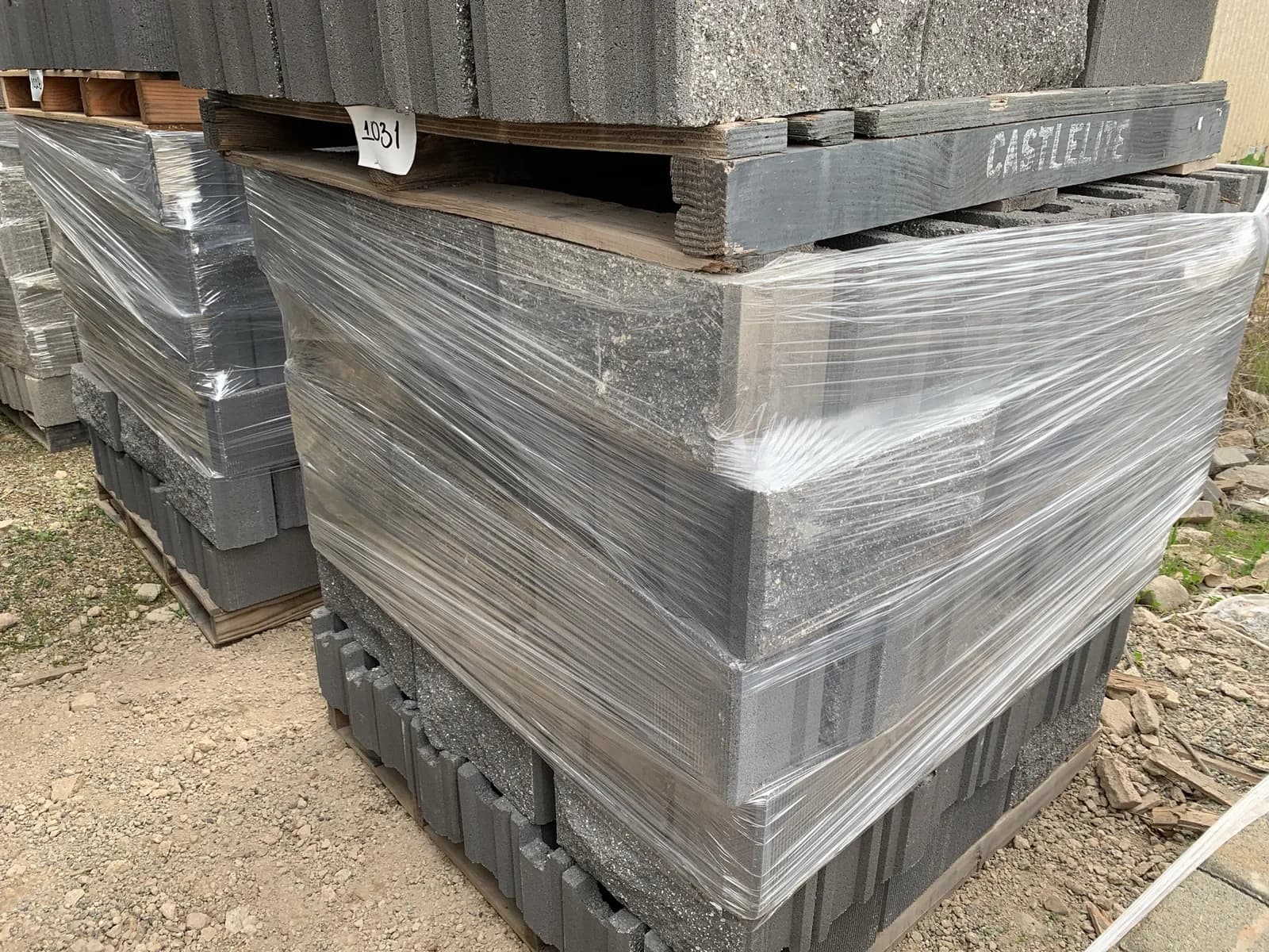 (3) Pallets Of 6x8x16 Split Face/Comb Face Fence Block Charcoal | West Auctions