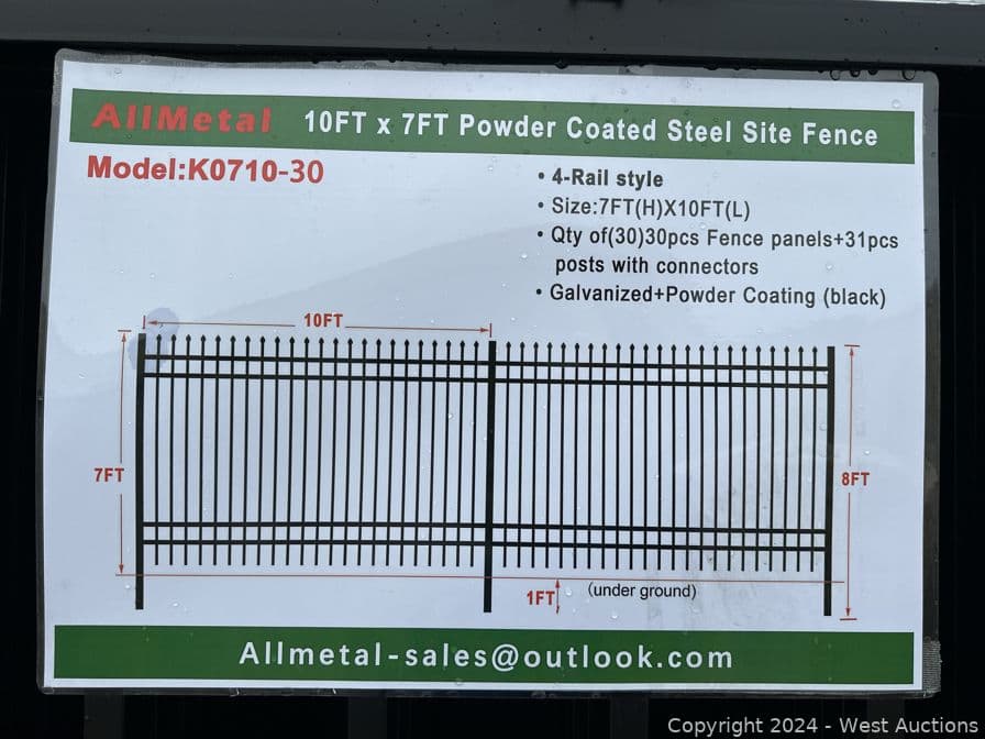 (30) 10'x7' 4-Rail Powder Coated Galvanized Fence Panels - 300 Linear Feet Total (Unused) | West Auctions