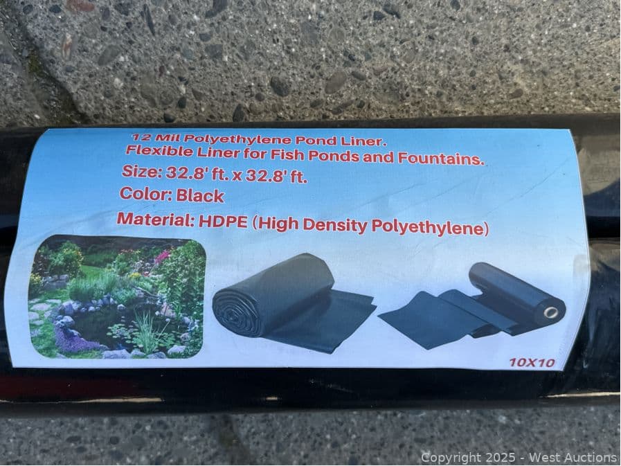 32.8x32.8' Roll of 12Mil Polyethylene Pond Liner (Unused) | West Auctions