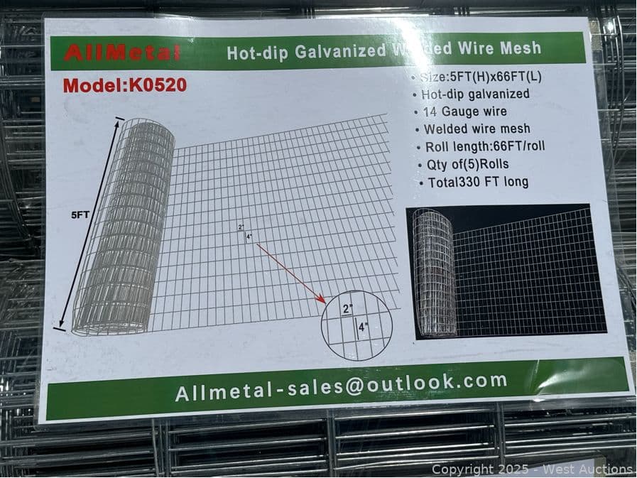 (5) 5'x66' Hot-Dip Galvanized 14GA Rolls of Welded Wire Mesh (Unused) | West Auctions