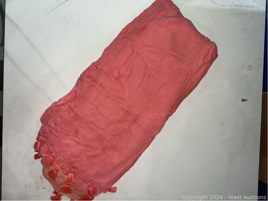 (58) Avon Mark Coral Ombré Tassel Scarf | West Auctions