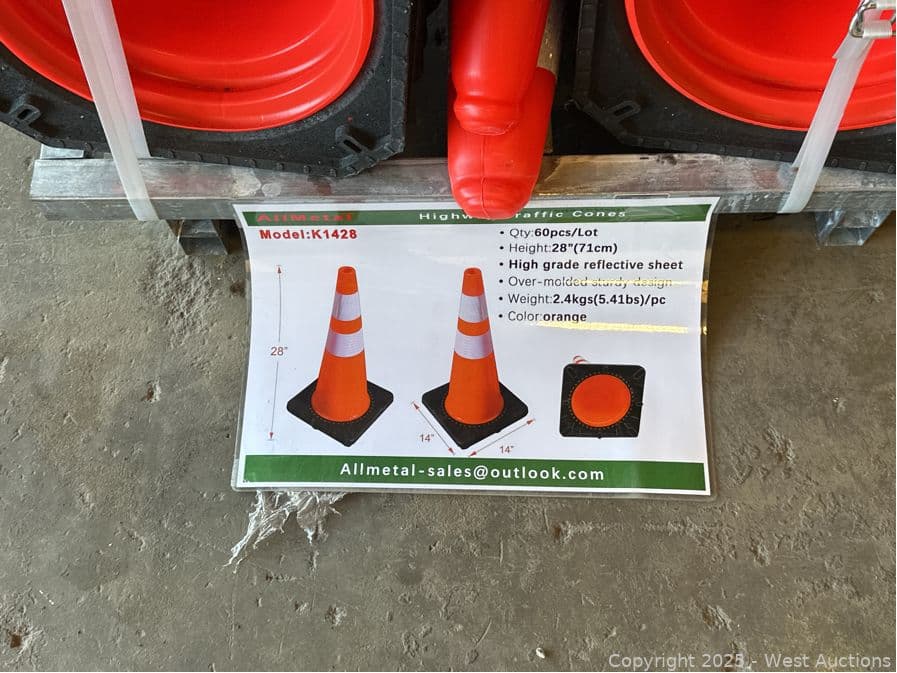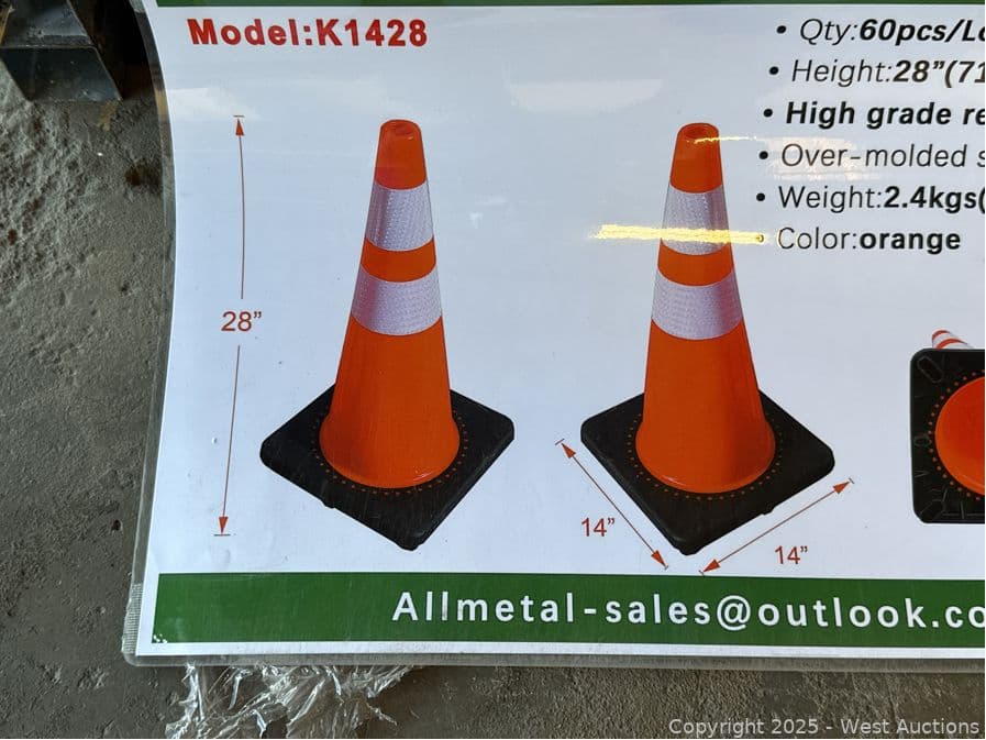 (60) 28" High Grade Reflective Orange Traffic Cones (Unused) | West Auctions