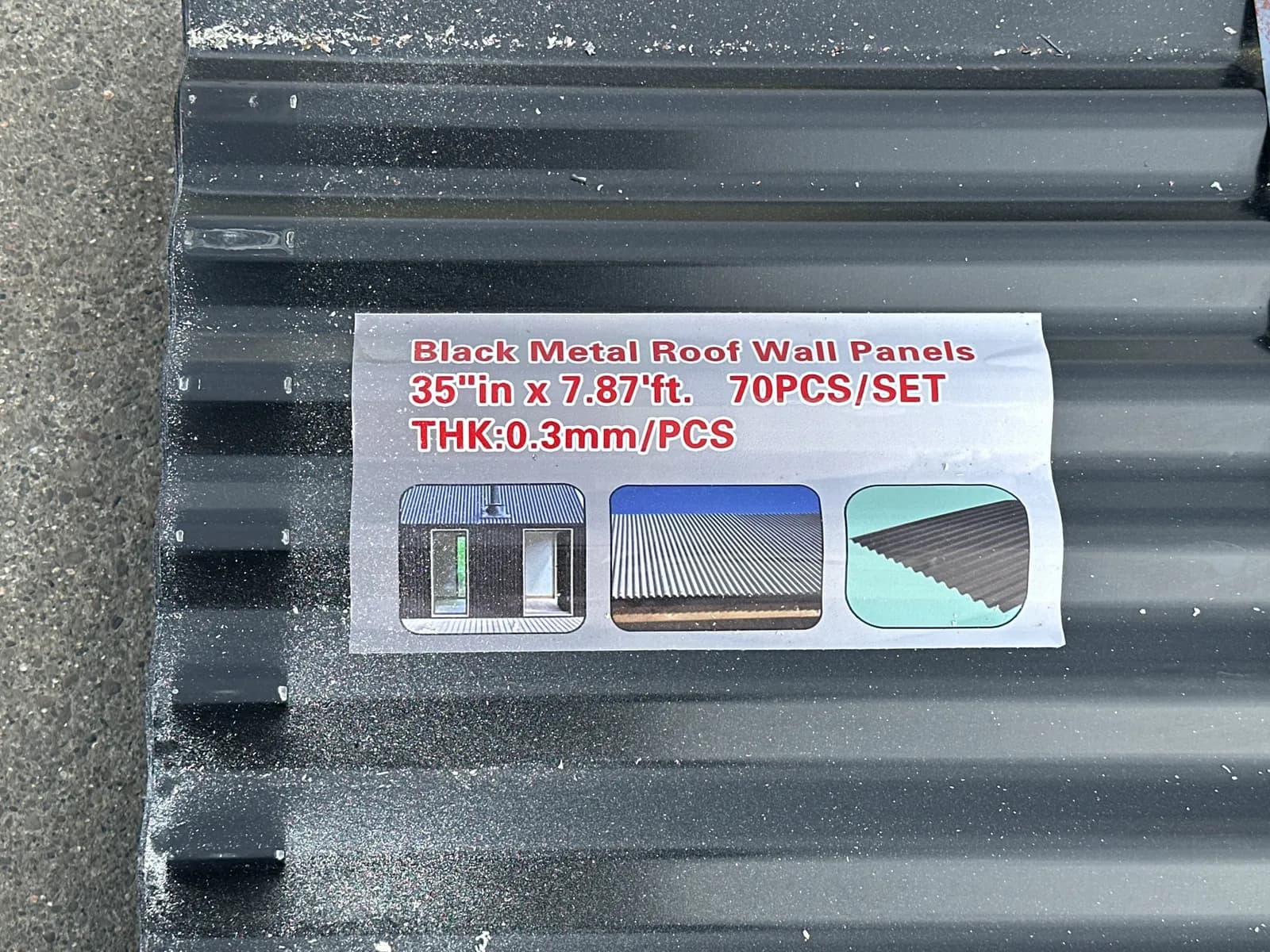 (70) Black Metal Roof Panels, 7.87'x35"x0.3mm (Unused) | West Auctions