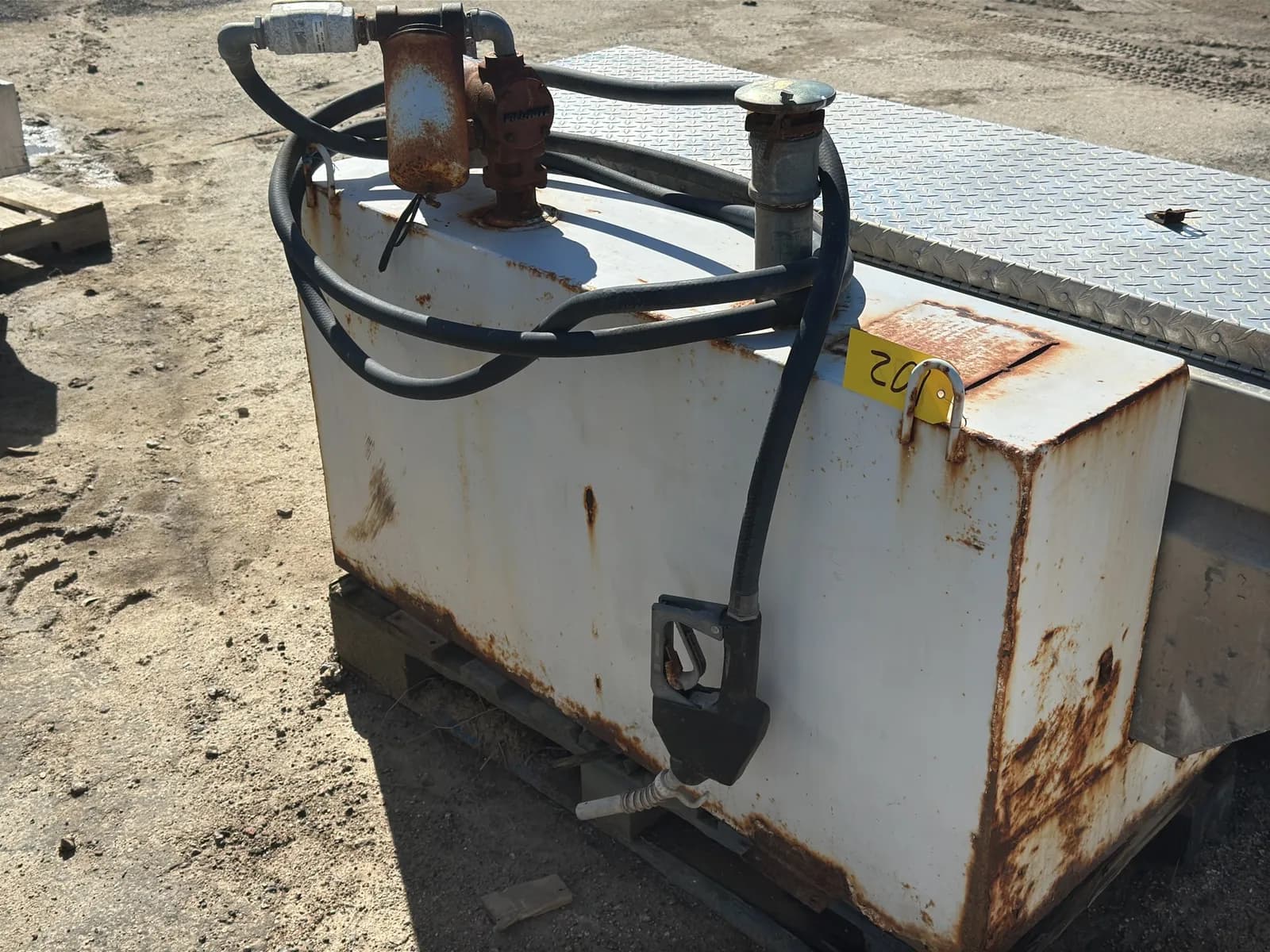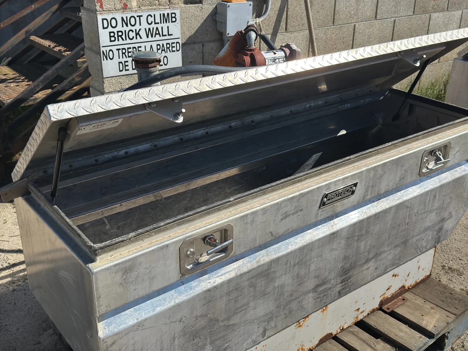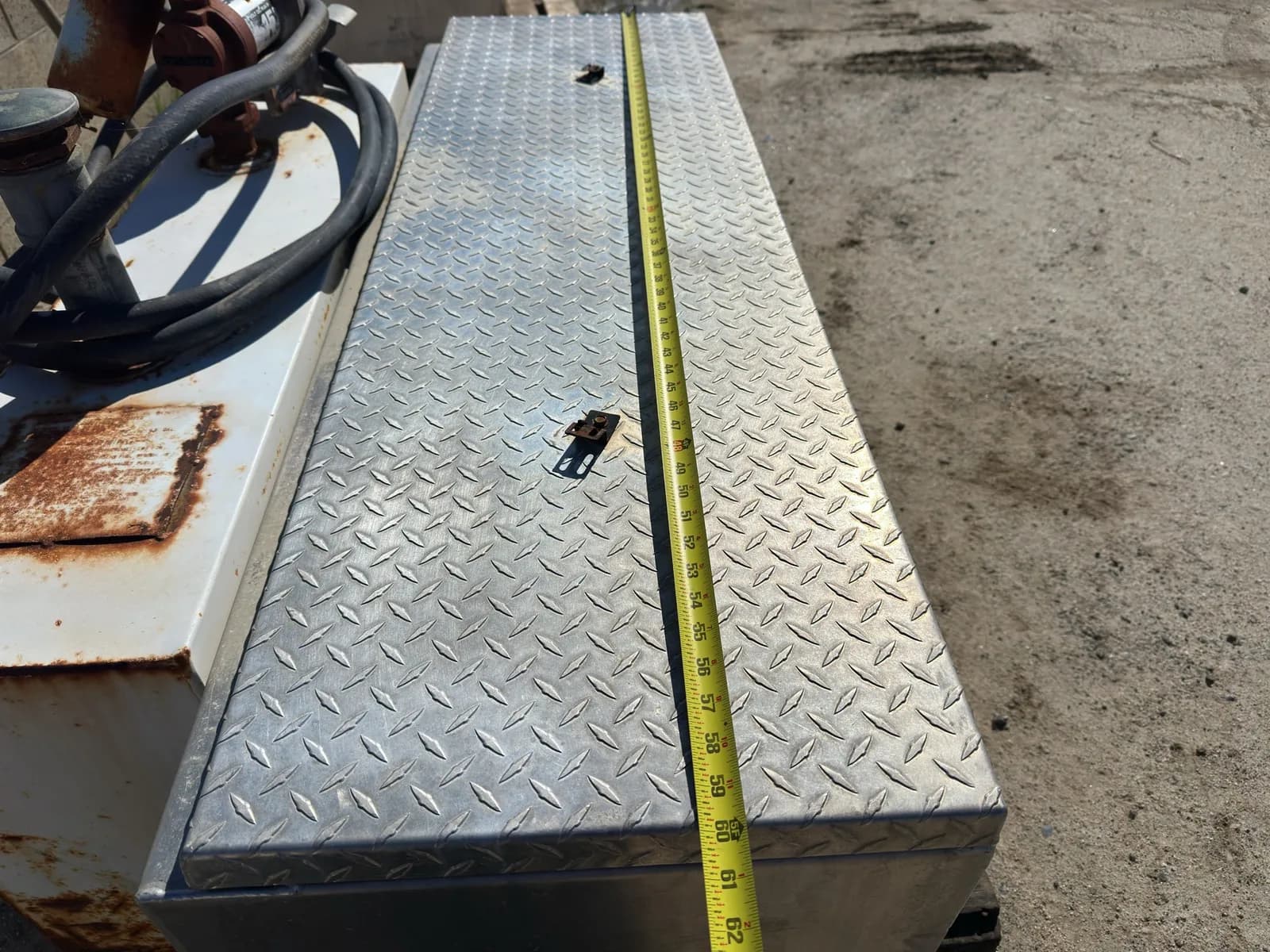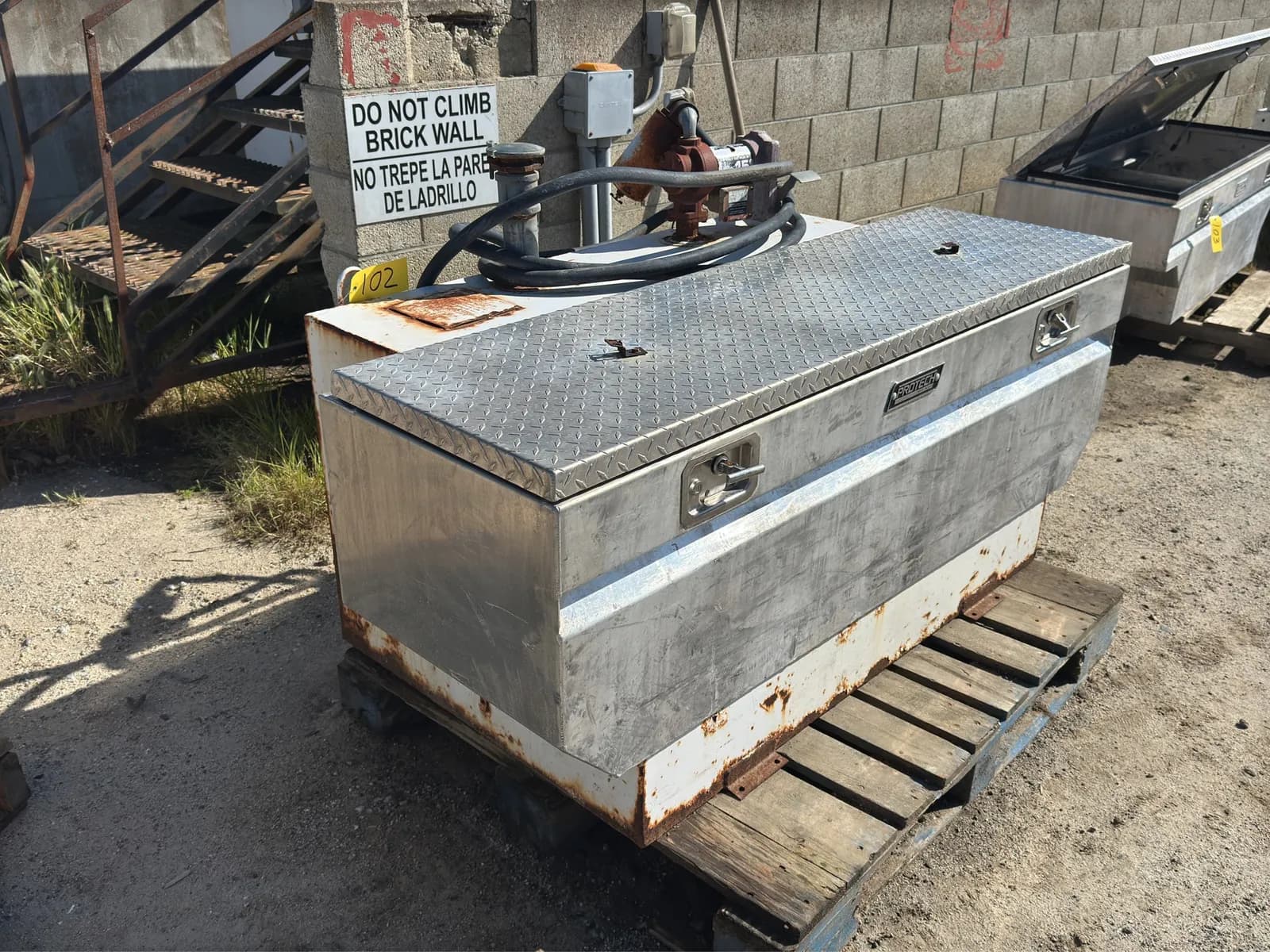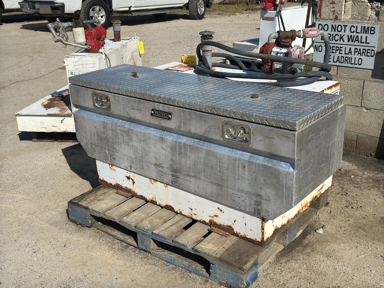 75-Gallon Truck Bed Fuel Tank With Mounted Protech Tool Box and Fill Tire Pump | West Auctions