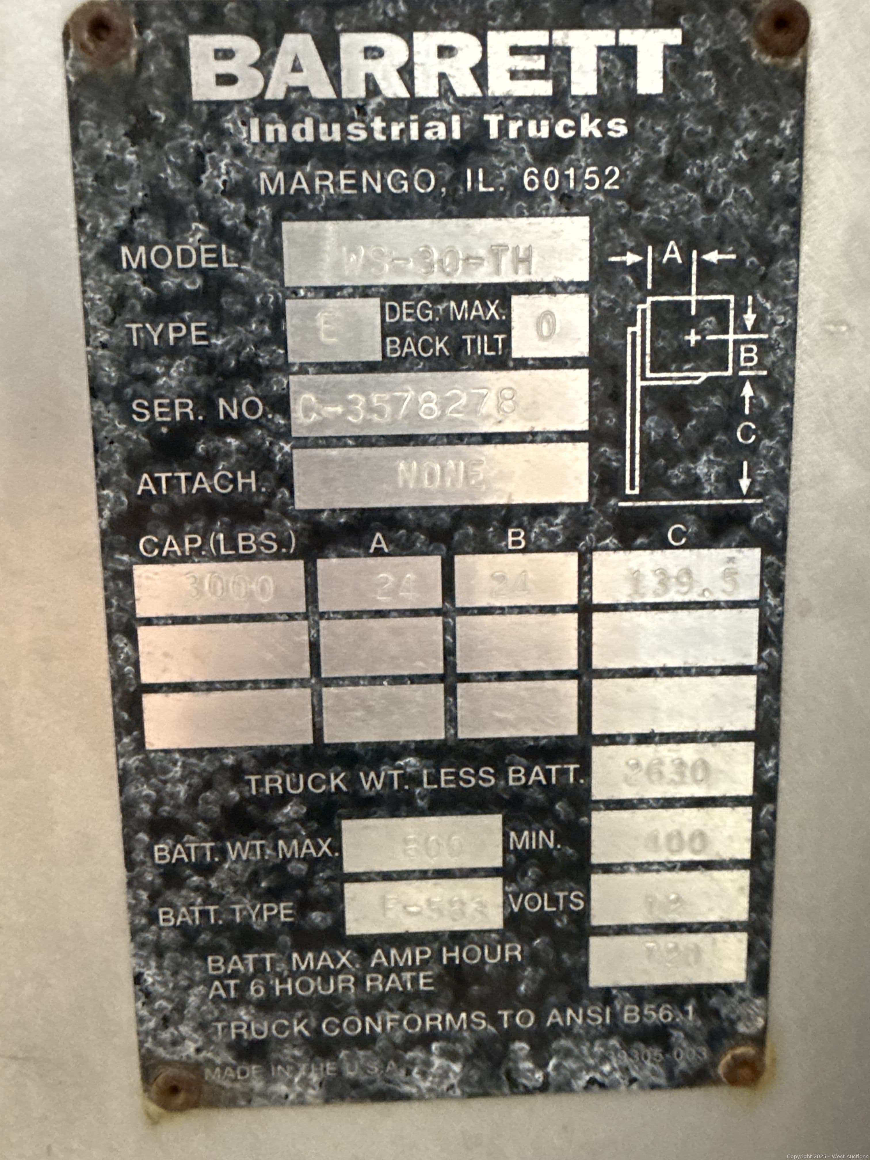 Barrett WS-30-TH Walkie Stacker 3,000lb Tandem Hand (San Jose Location and Special Removal Note) | West Auctions