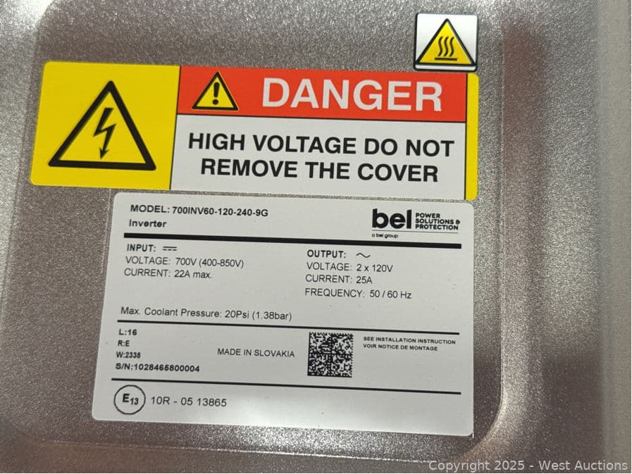 Bel 700INV60-120-240-9G DC-AC Inverter for Hybrid Electric Vehicle Applications (Unused) | West Auctions