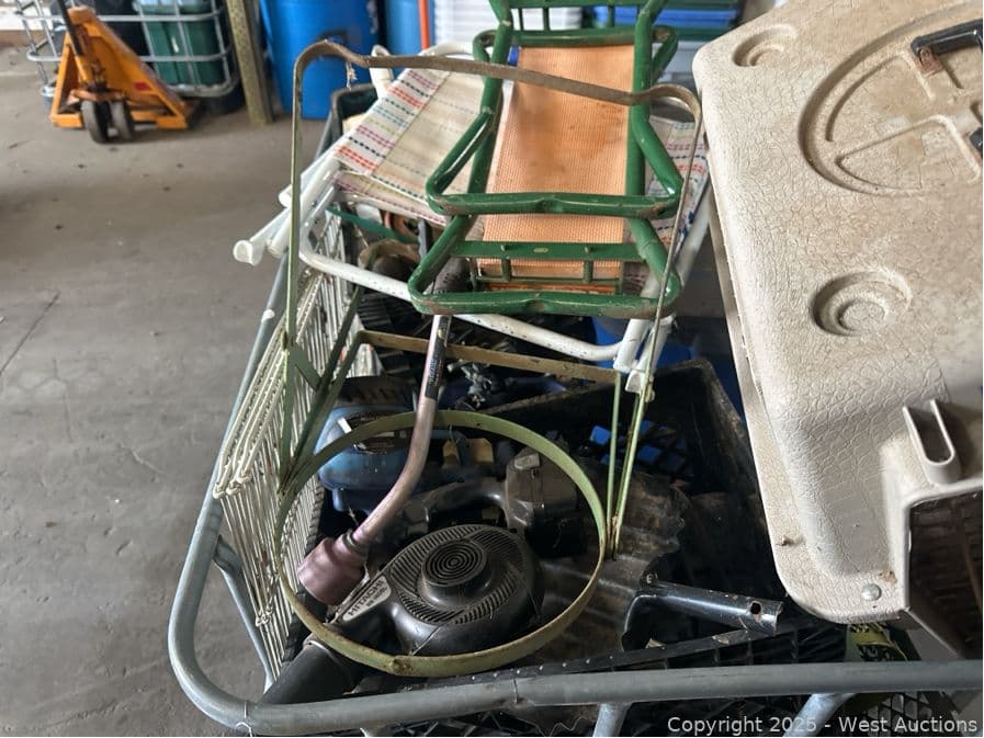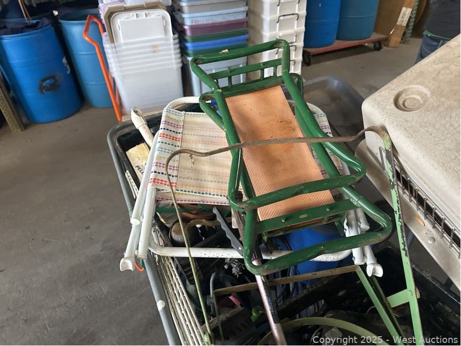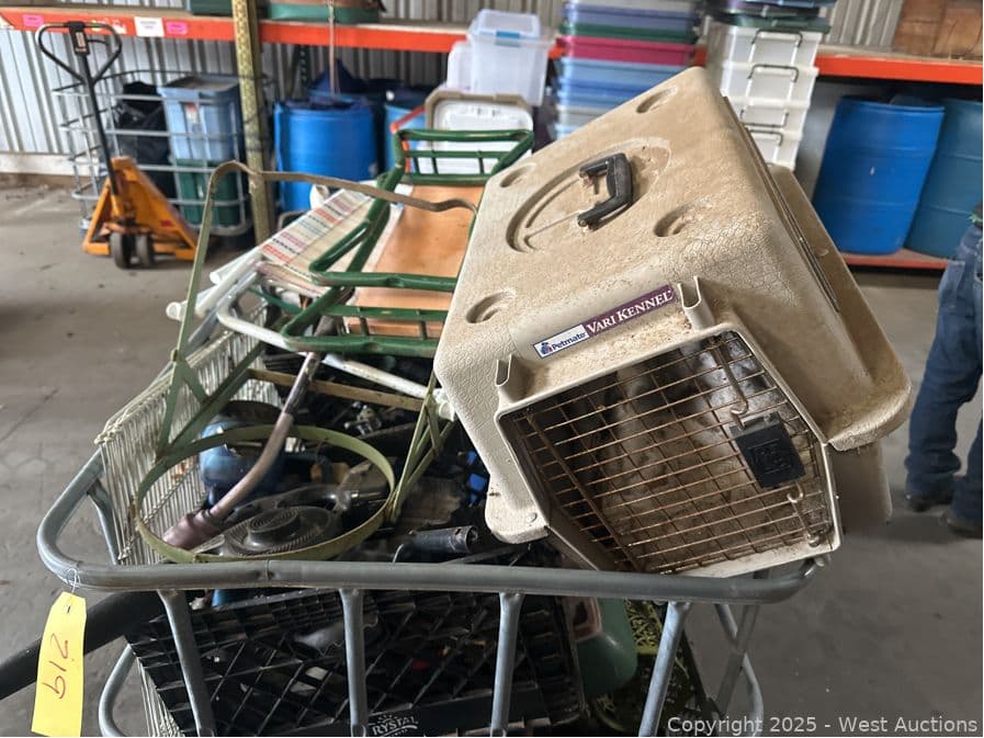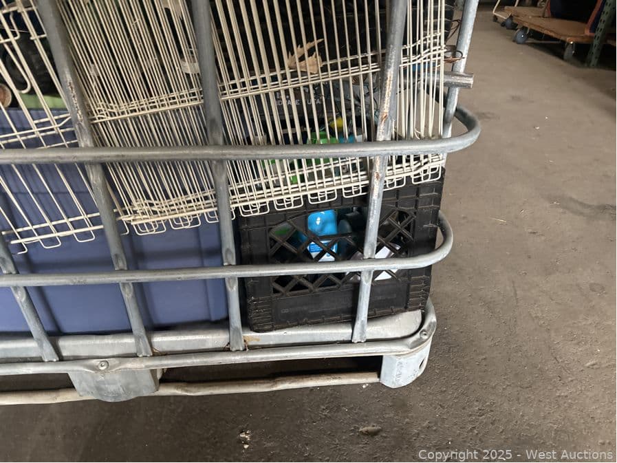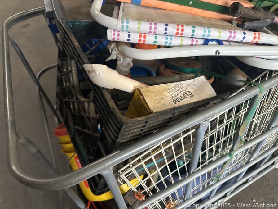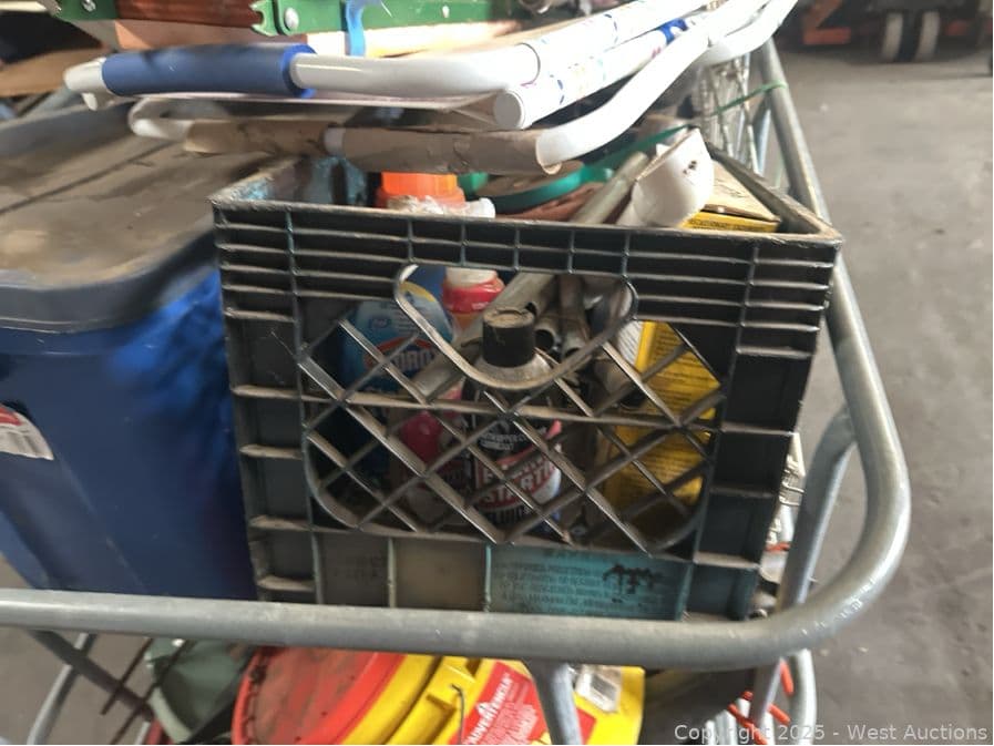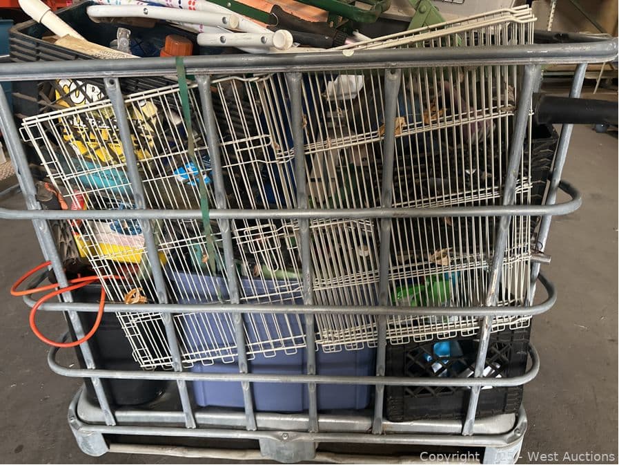 Bin And Contents: Assorted Crates Of Tools, Gardening, Animal Crate, Chemicals | West Auctions
