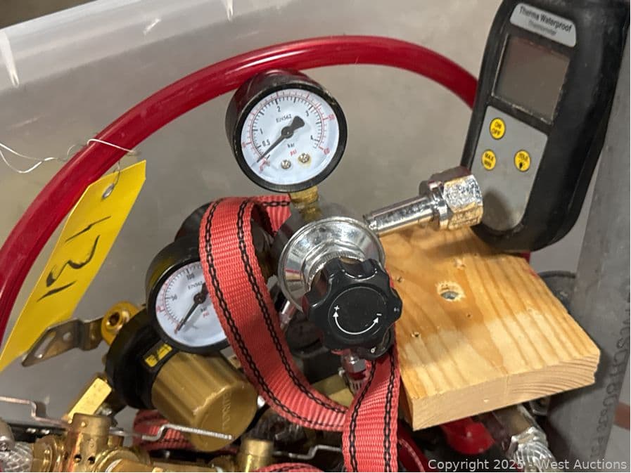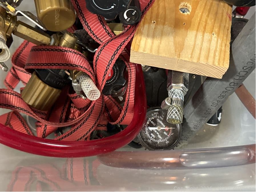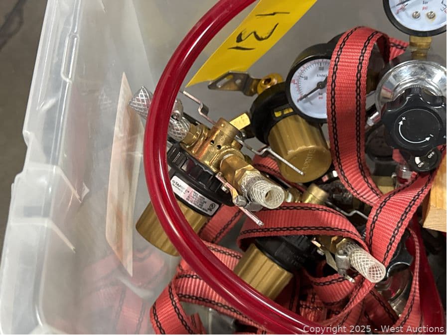 Bucket And Contents: Thermometer, Gauges | West Auctions