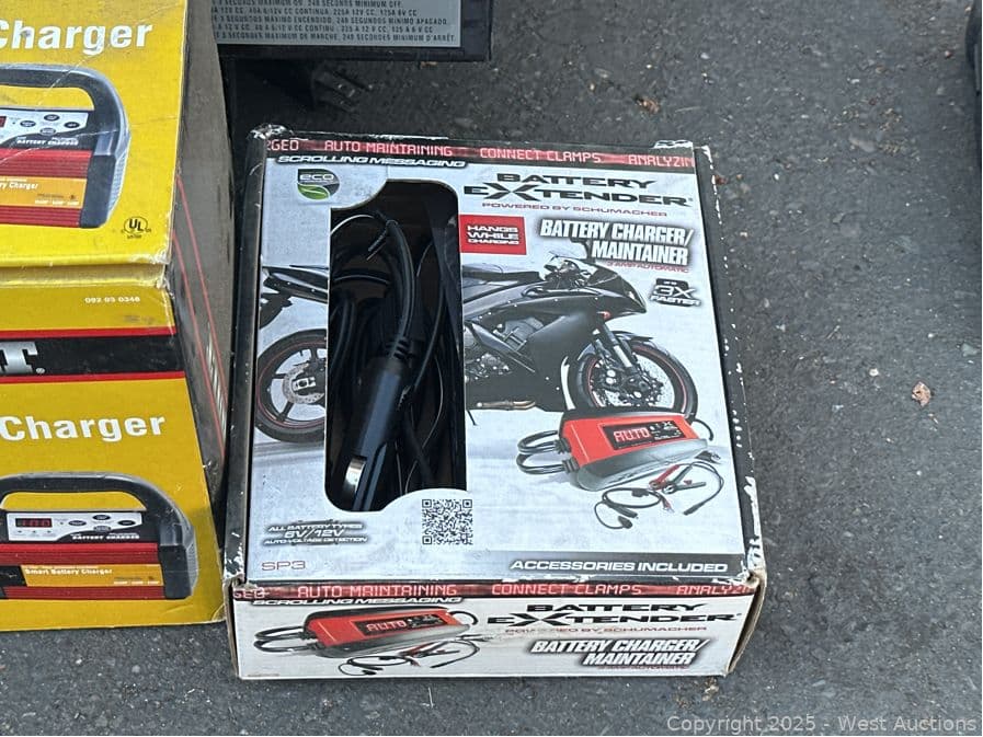 Bulk Lot: Battery Chargers, Jumpers, Motorcycle Maintainer | West Auctions