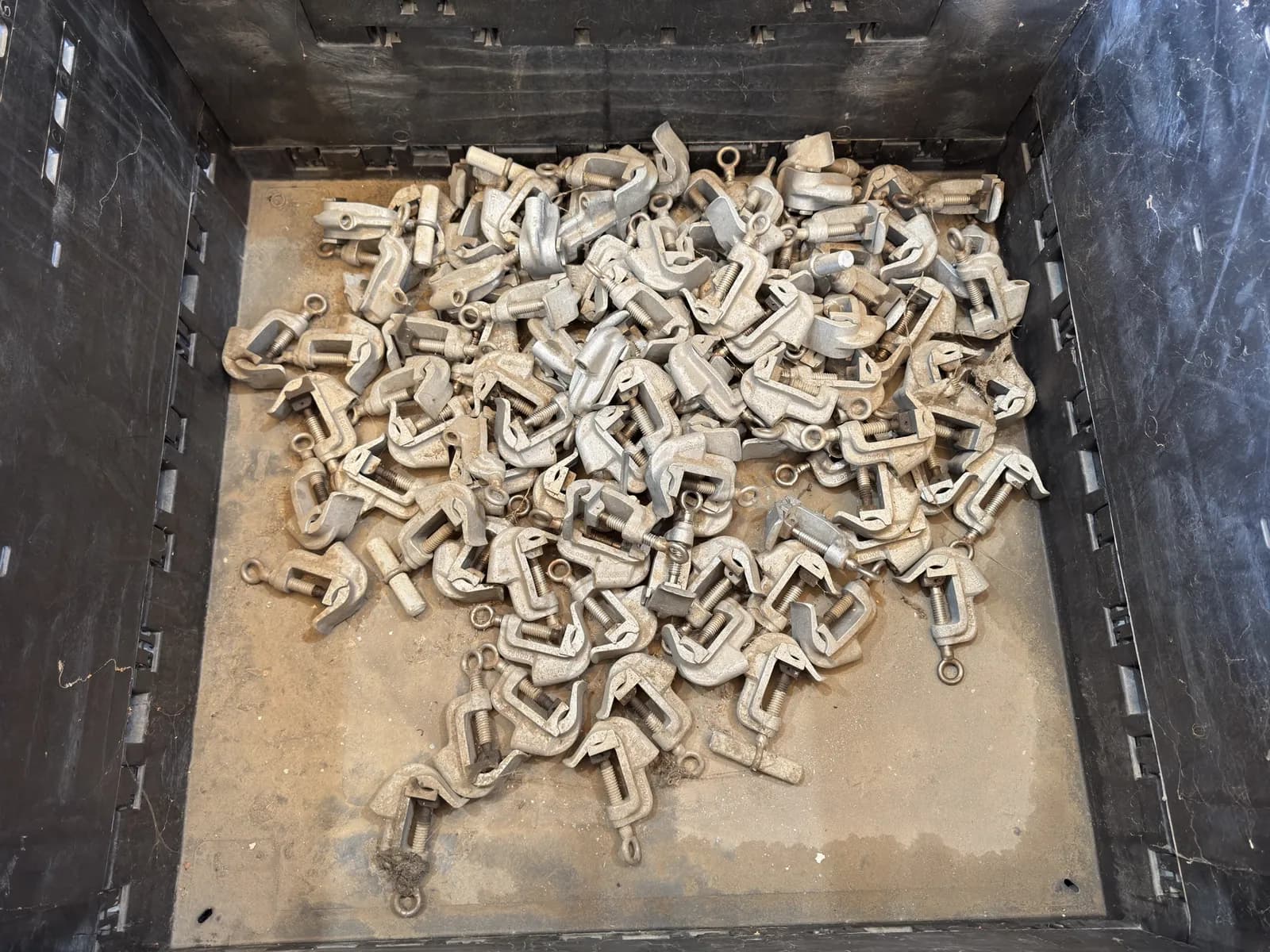 Collapsing Plastic Bin With Contents: Clamp Ground Conductors | West Auctions