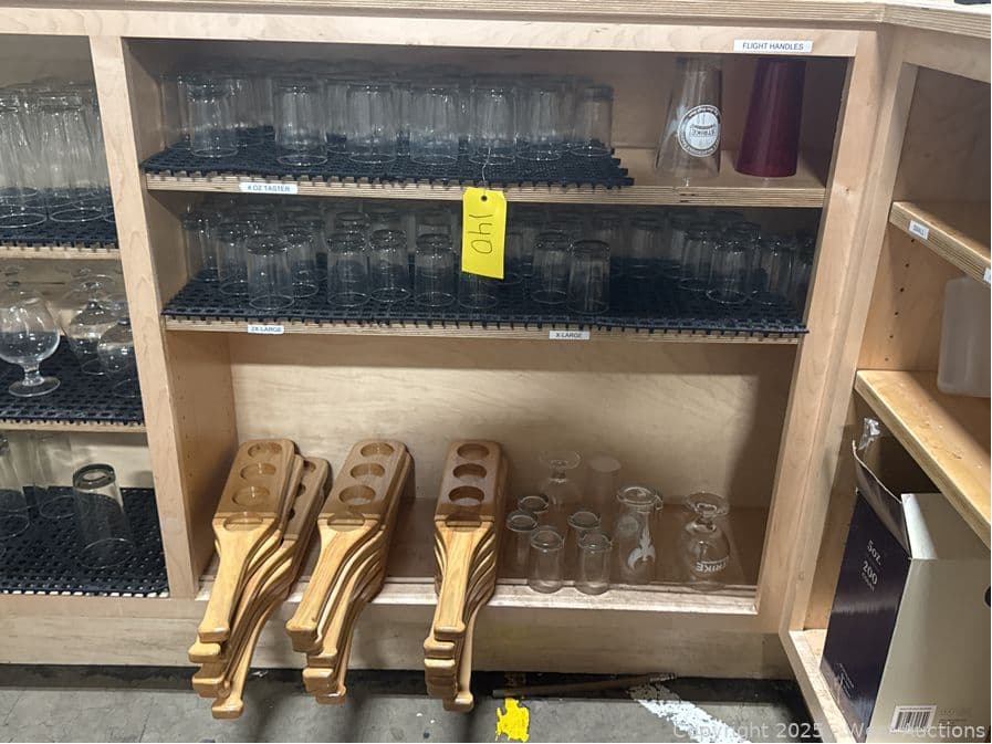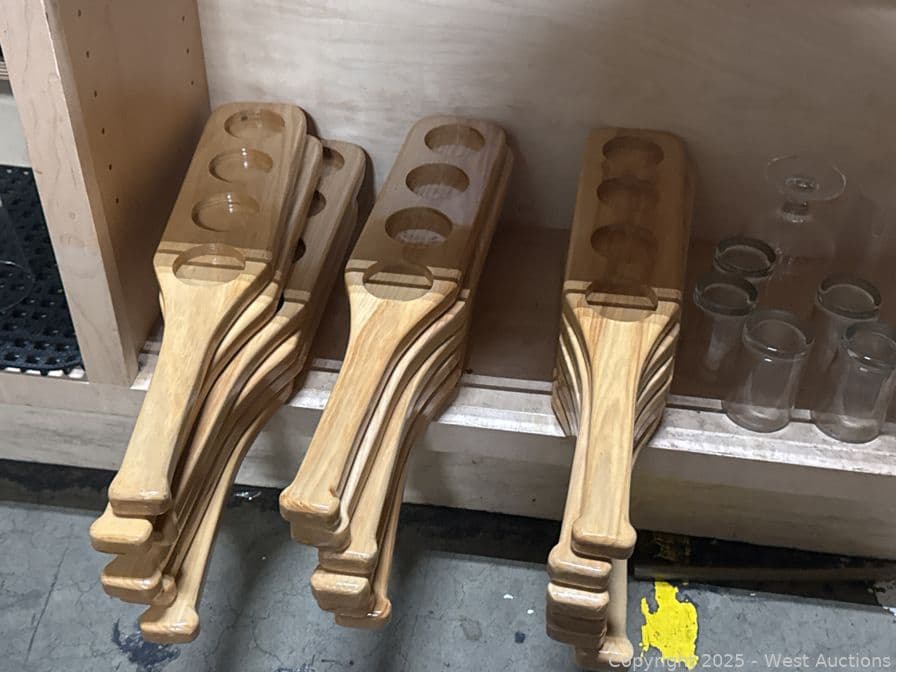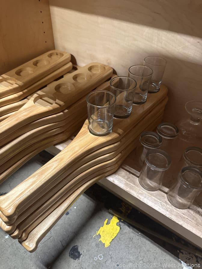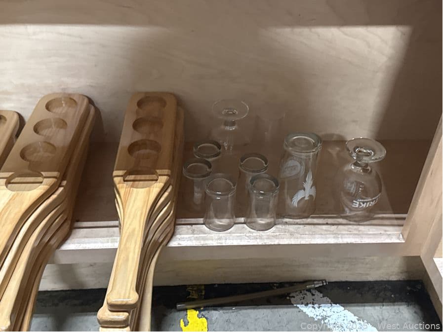 Contents Of (3) Shelves: 4 Oz Glass Flight Cups, Flight Paddles | West Auctions