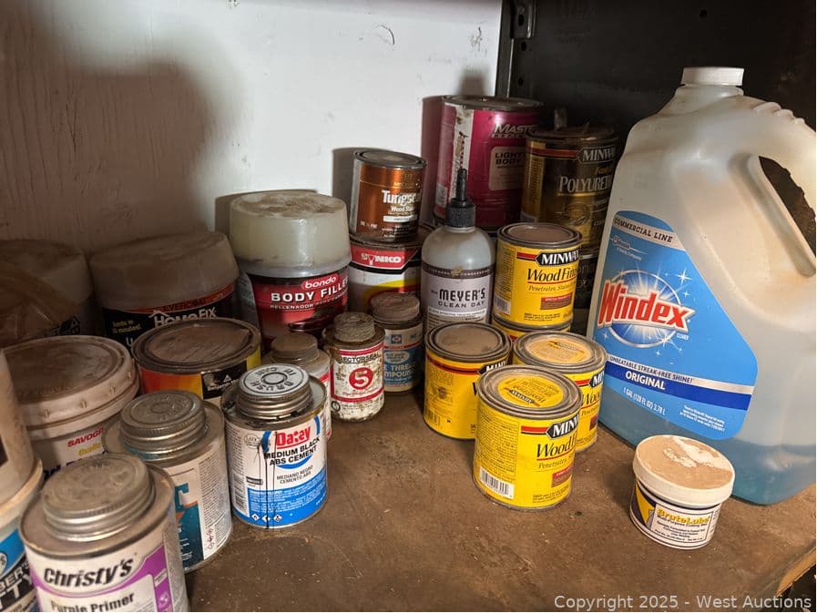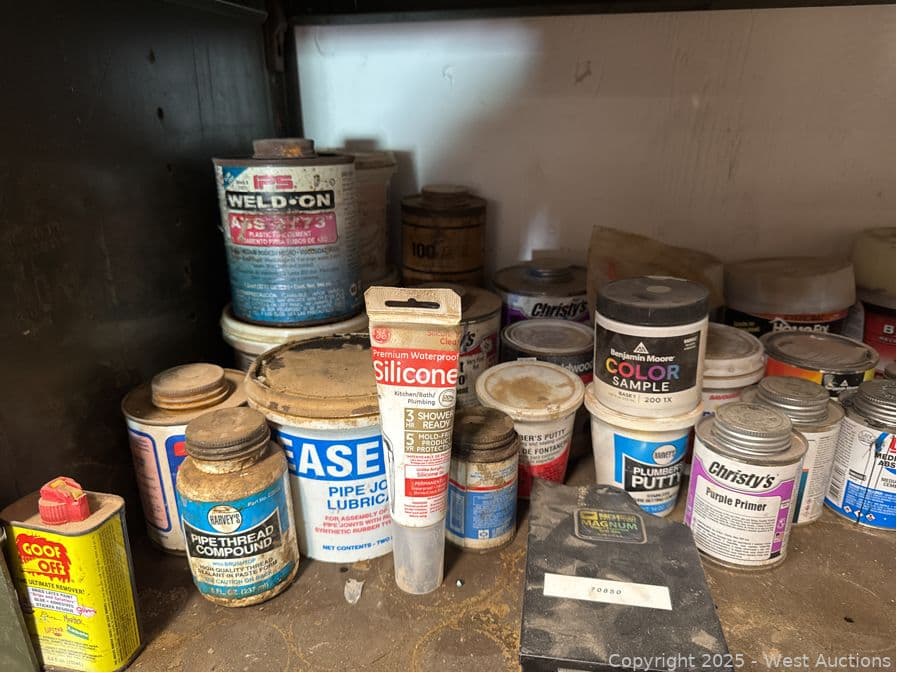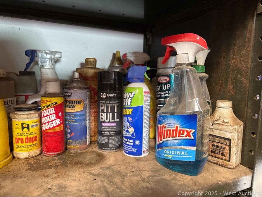 Contents Of Cabinet: Assorted Chemicals, Caulk Guns And More | West Auctions