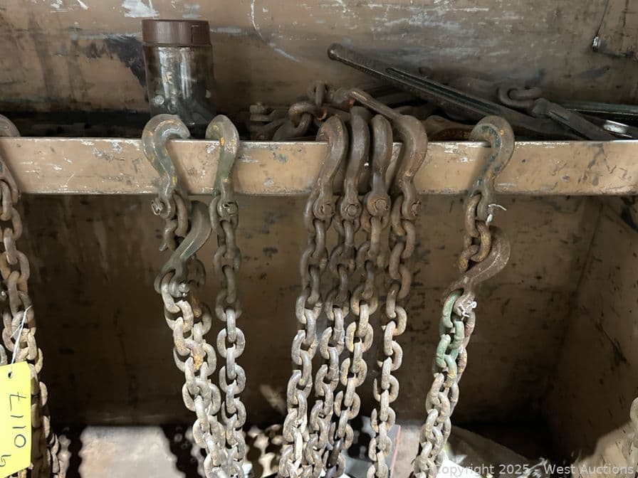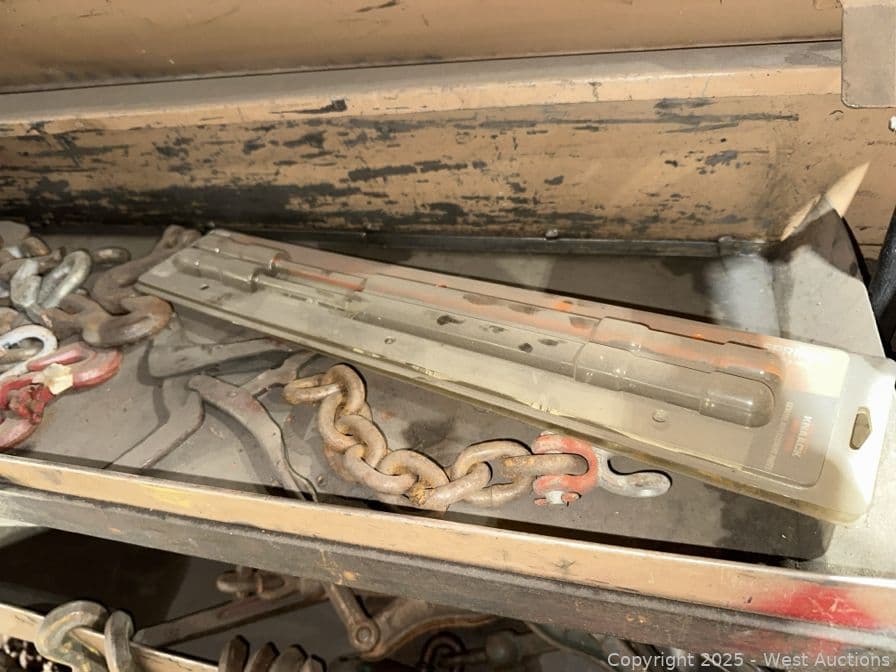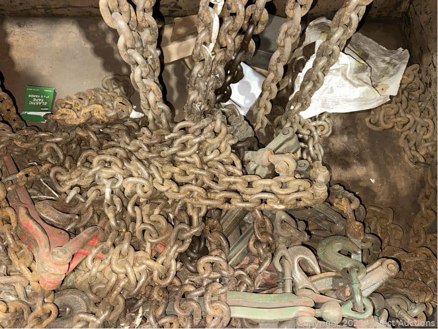 Contents Of KNAACK Box: Assorted Heavy Duty Chain, Binders, Rigging Hooks, And More | West Auctions