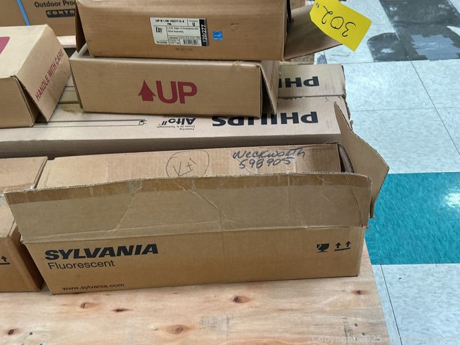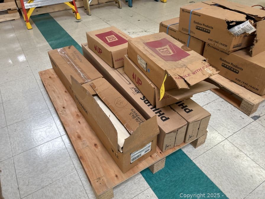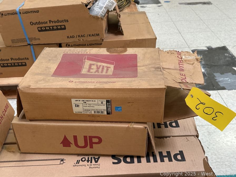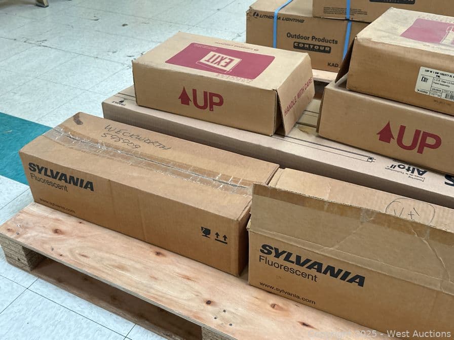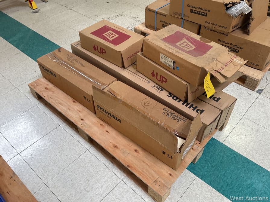 Contents Of Pallet: (3) Exit Signs, (2) Box Of Philips Fluorescent Light Bulbs, And (2) Box Of Sylvania Light Bulbs | West Auctions