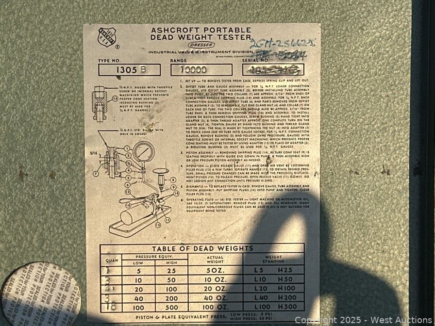 Contents Of Pallet: (4) Ridgid Geared Threaders, T And B Hydraulic Pump, Ashcroft Portable Dead Weight Tester, And More | West Auctions