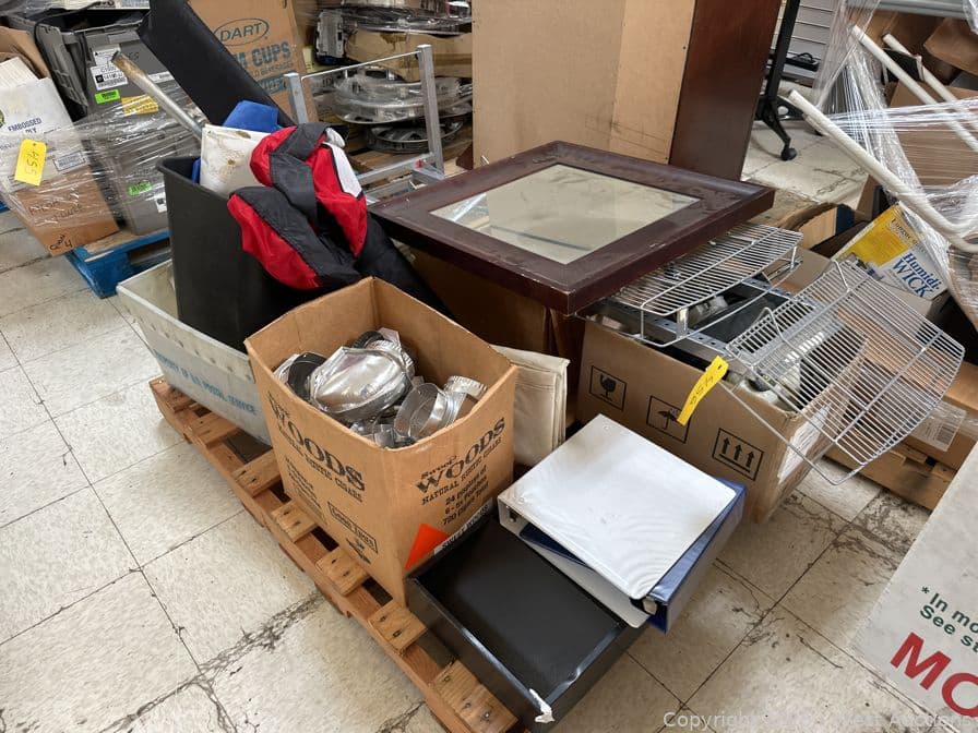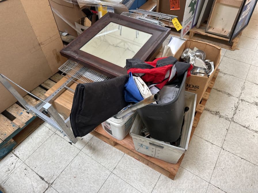 Contents Of Pallet: Wood Mirror, Aluminum Ducting, File Holders, And More | West Auctions