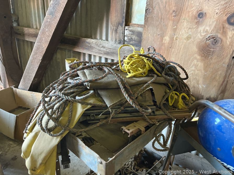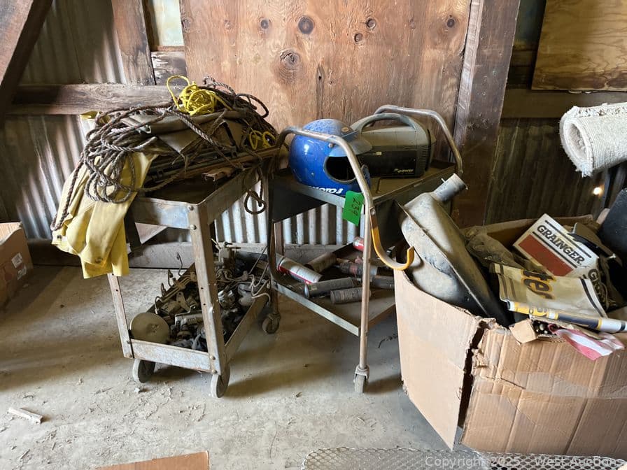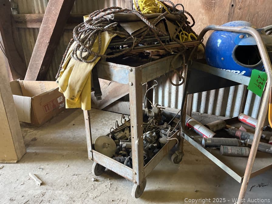 Contents Of Section: (2) Rolling Shop Carts, Dirt Bike Helmet, Assorted Rope, And More | West Auctions