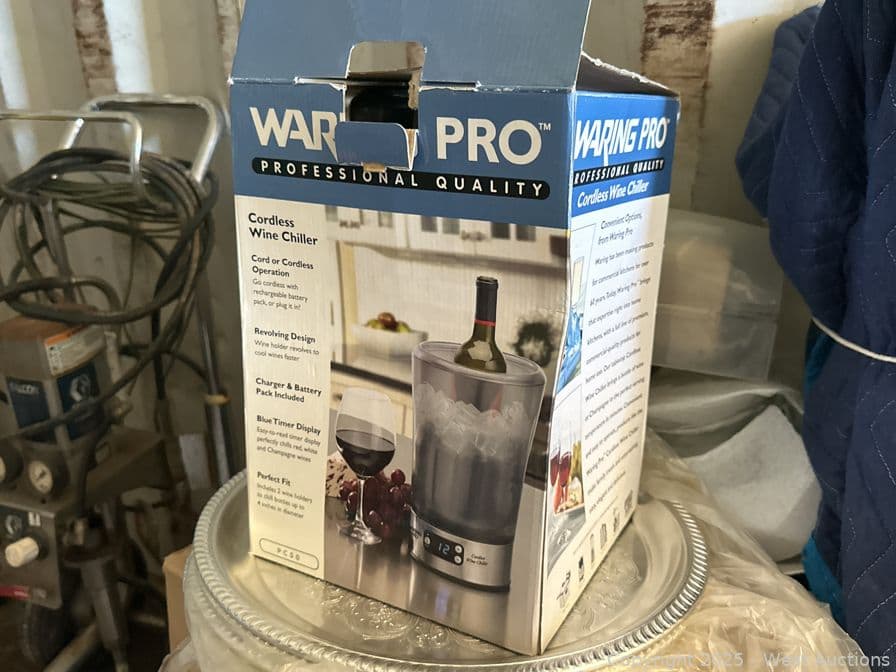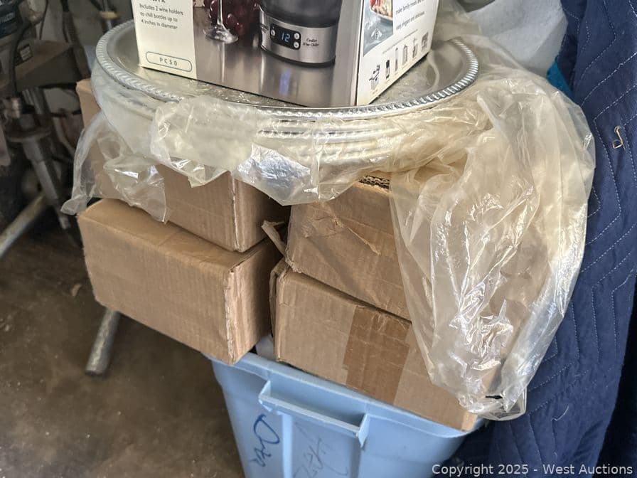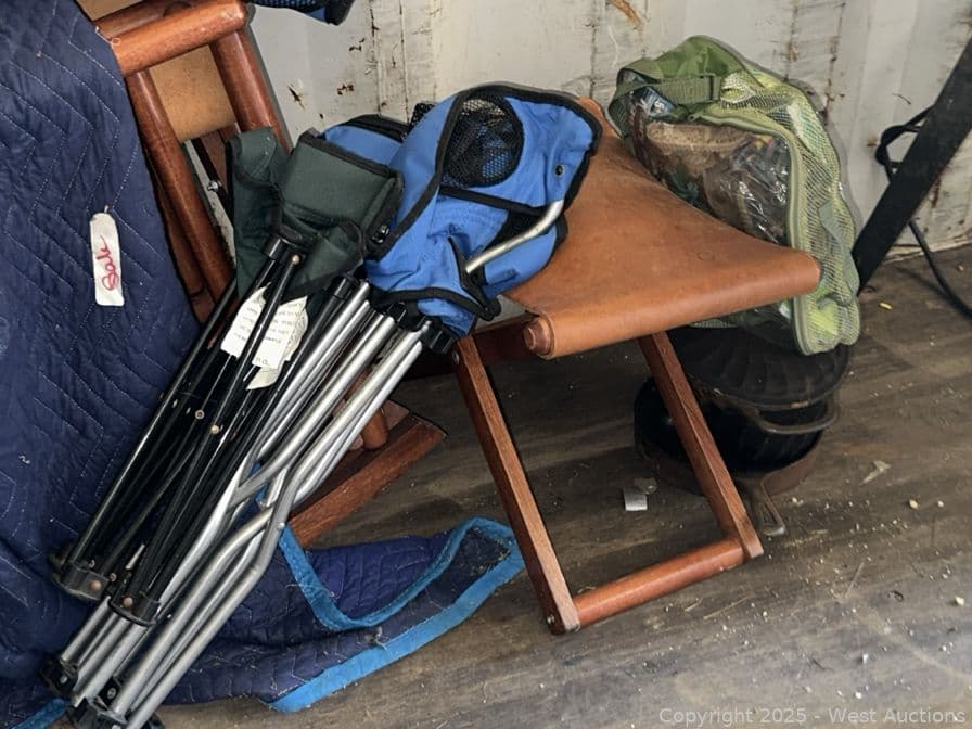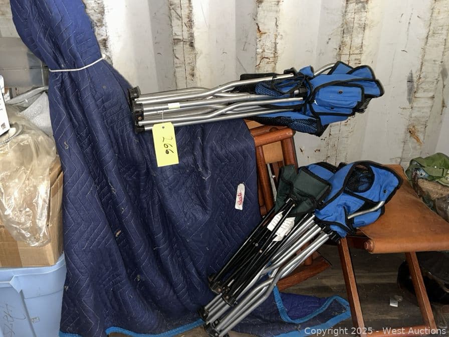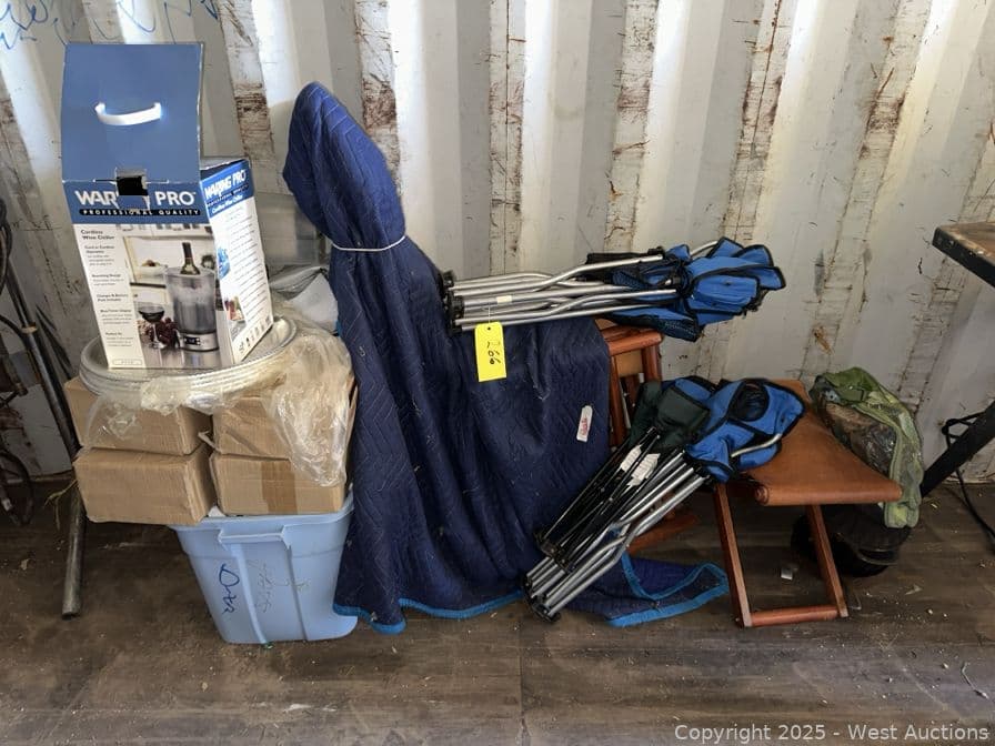 Contents Of Section: (3) Lawn Chairs, Cordless Wine Chiller, Faux Silver Platters, And More | West Auctions