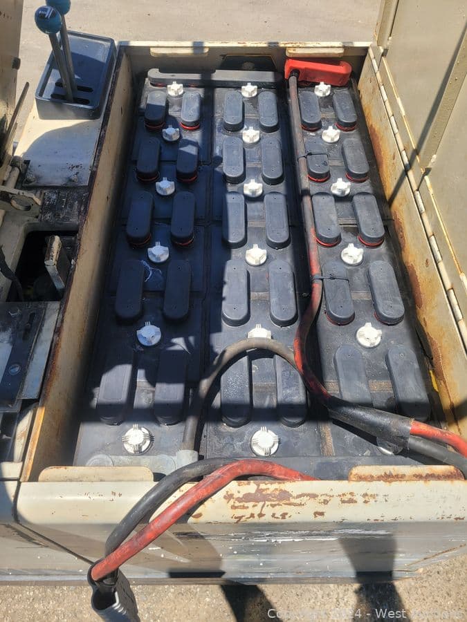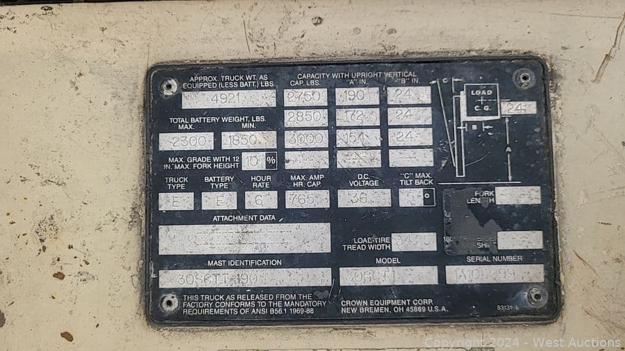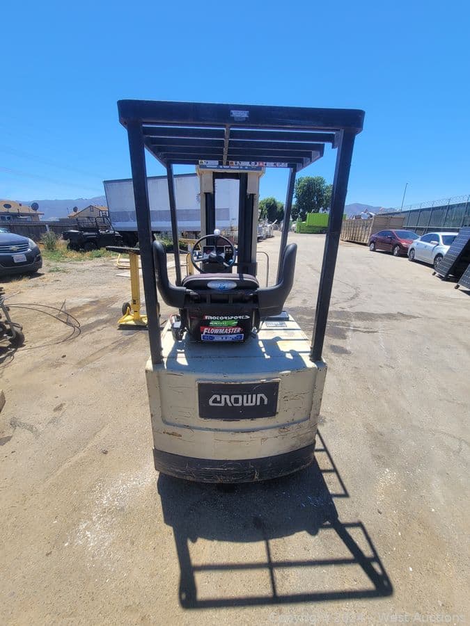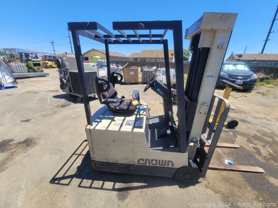 Crown 30SCTT 3000 LBS Capacity Electric 3-Wheel Forklift and Hawker 12-Cells Forklift Battery Charger | West Auctions