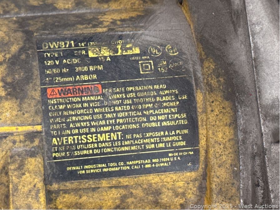 DeWalt Dw871 14” Chop Saw | West Auctions