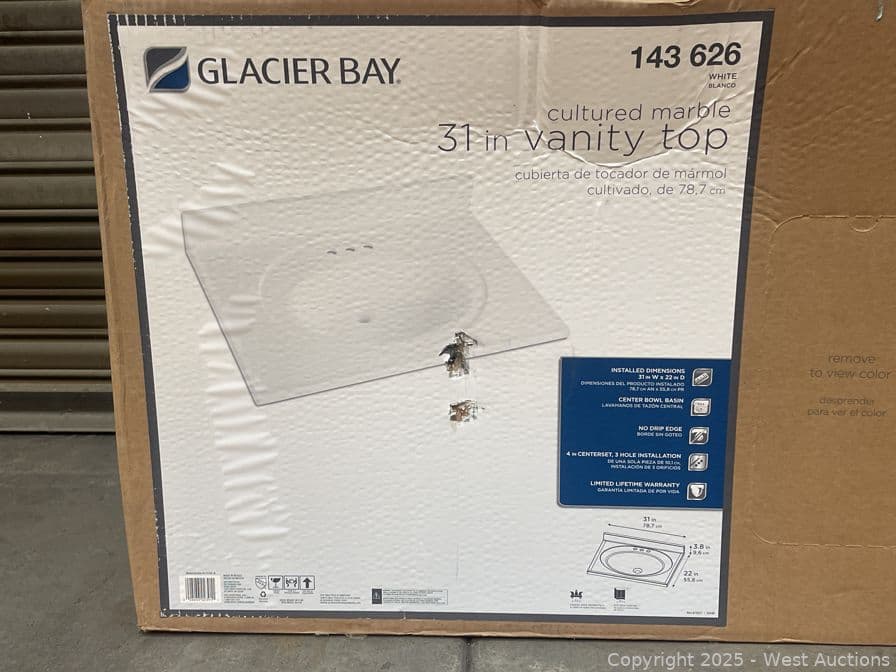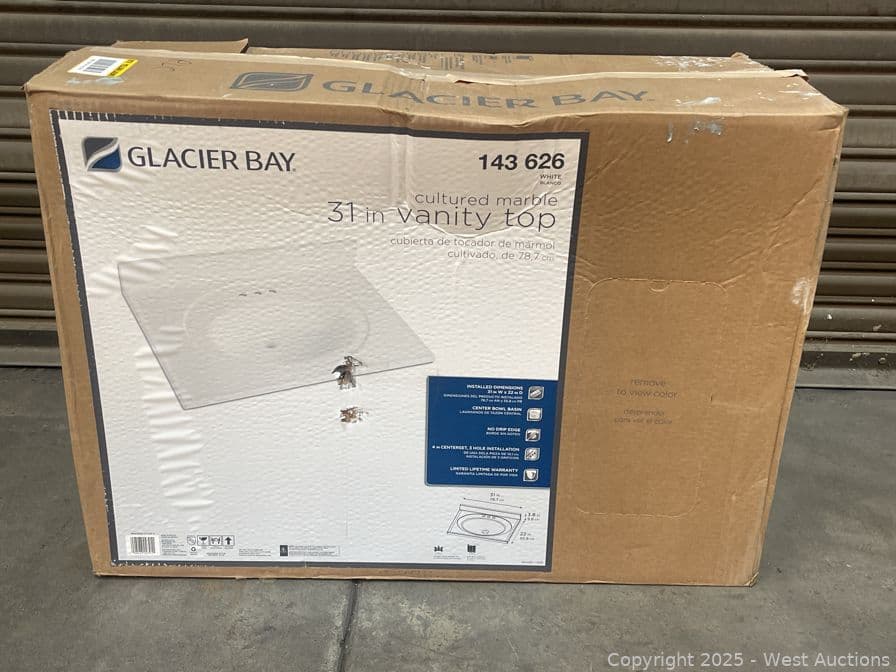 Glacier Bay 31 in. W x 22 in. D Cultured Marble White Round Single Sink Vanity Top in White- $99 Retail Price | West Auctions