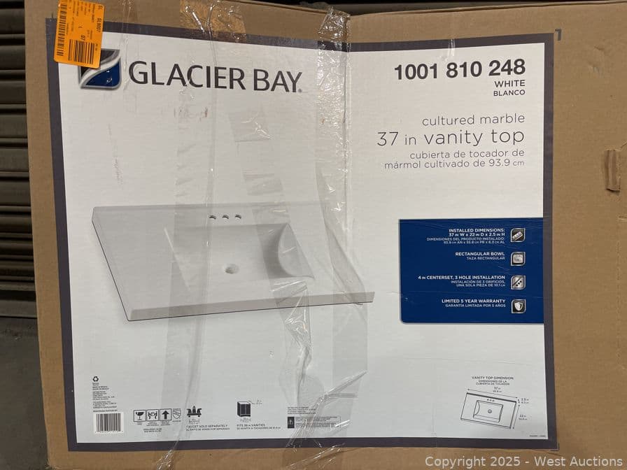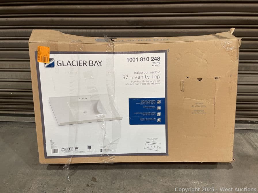 Glacier Bay 37 in. W x 22 in. D Cultured Marble White Rectangular Single Sink Vanity Top in White- $194 Retail Price | West Auctions