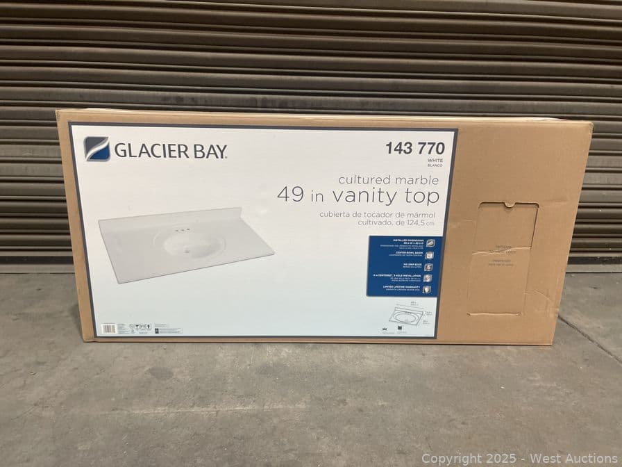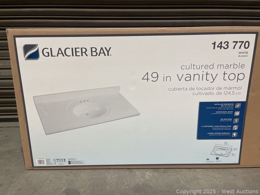 Glacier Bay 49 in. W x 22 in. D Cultured Marble White Round Single Sink Vanity Top in White- $159 Retail Price | West Auctions