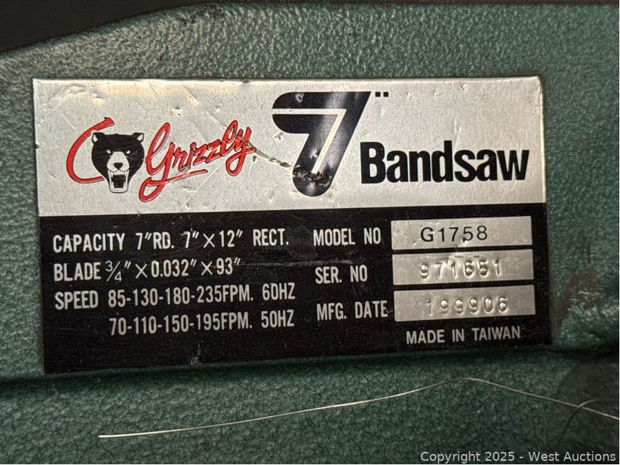 Grizzly 7” Band Saw | West Auctions