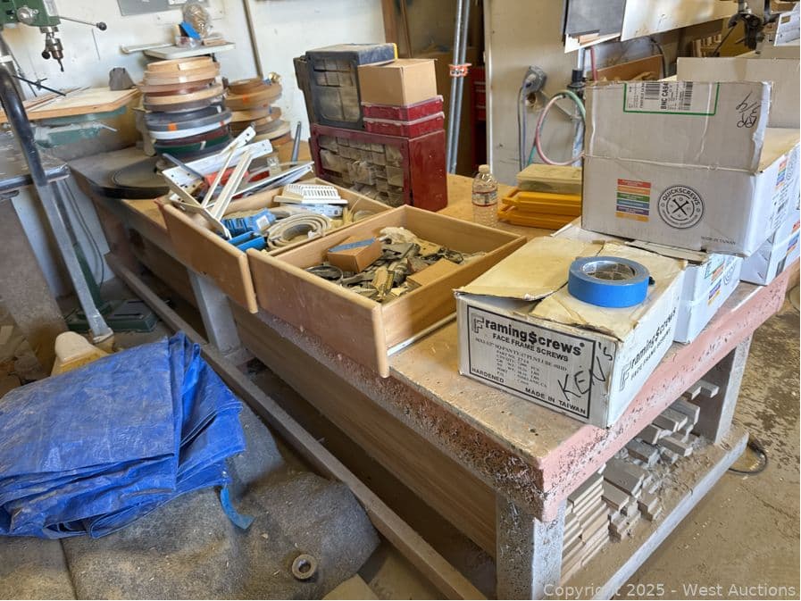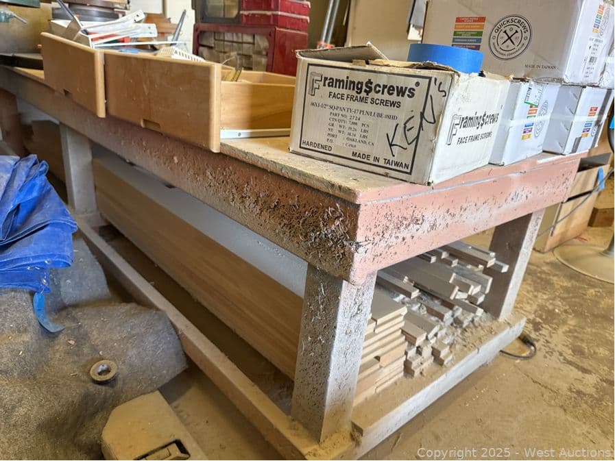 Handmade Wood Shop Table (contents Not included) | West Auctions