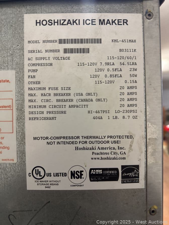 Hoshizaki Ice Maker 450lb | West Auctions
