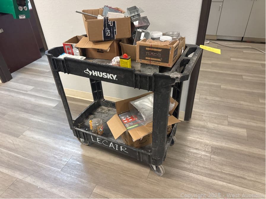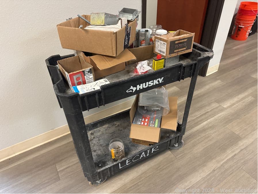 Husky Rolling Plastic Cart And Contents: Electrical Supply | West Auctions