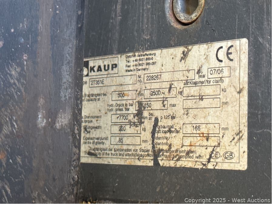 Kaup 2T351E 365 Degree Forklift Rotator | West Auctions
